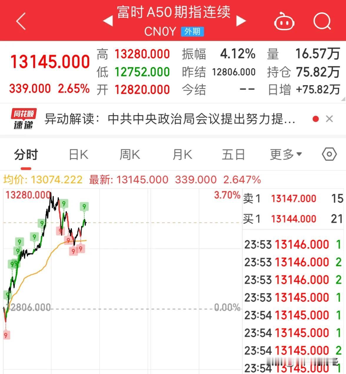 #央行打出“组合拳” A股牛市来了吗#重大利好消息中国资产今晚再度暴涨,A股和港股明天继续大涨9月牛到没朋友:截至9月26日23:50分,中国资产今晚估值再度暴涨,中概股指数大涨10.85%,继续暴涨;富时A50指数暴涨收复13000点;恒生科技期指再度暴涨超3%。不出意外,A股和港股明天将继续大涨,A股冲击3100点,9月牛到没朋友。这个国庆节红包超级大,股民和基民坐稳扶好,继续底仓不动,做好低吸高抛,趋势不变继续赚钱,国庆假期为国消费!你认为A股大牛市来了吗?点赞关注评论区留言。