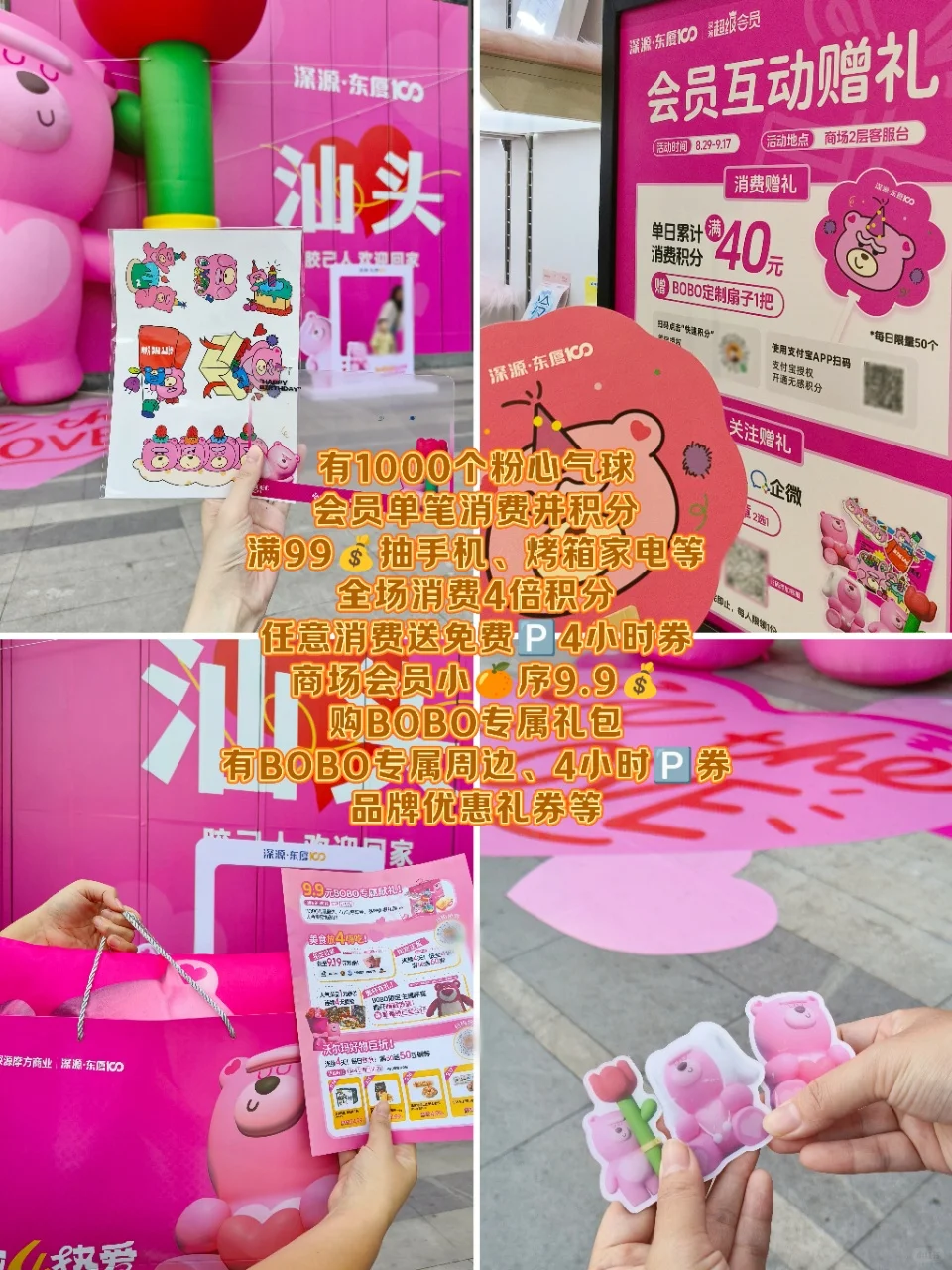 汕头甜蜜粉熊,爱的啵啵 📍 深源东厦100购物广场 🎂 ④周年活动 🐻 9.14 - 9.17 ④周年·会员🧧利 美食饮品/零售服饰/黄金珠B/娱乐 详情左滑👀图喔