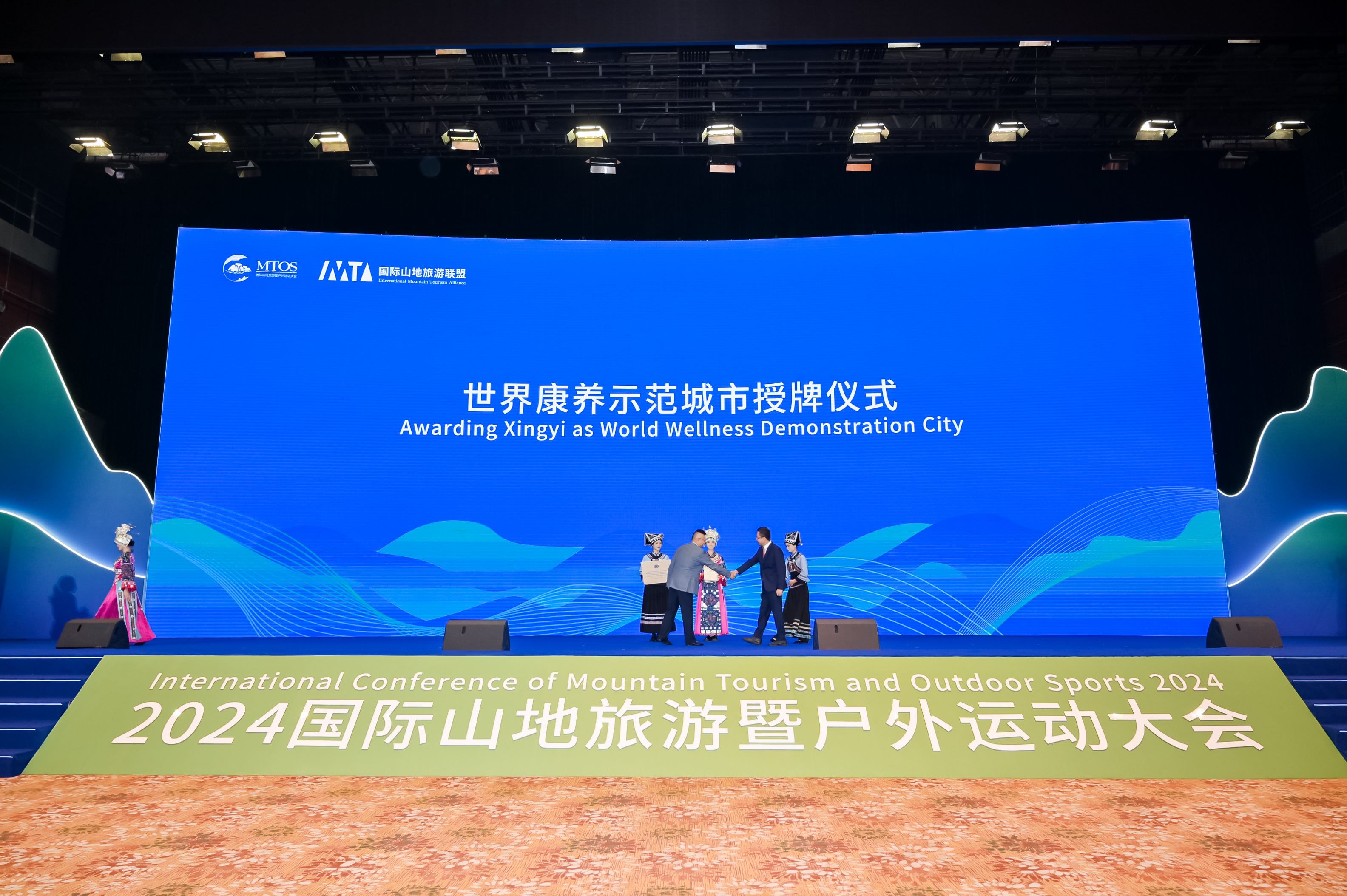 受邀参加2024国际山地旅游暨户外运动大会,在会上见证了兴义市获得“世界康养示范城市”的授牌,这一荣誉体现了兴义在旅游文化和城市发展方面的卓越成就。