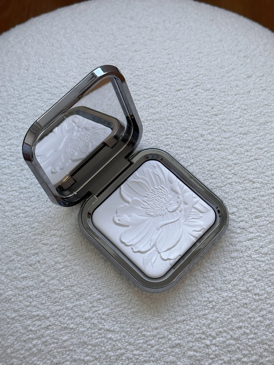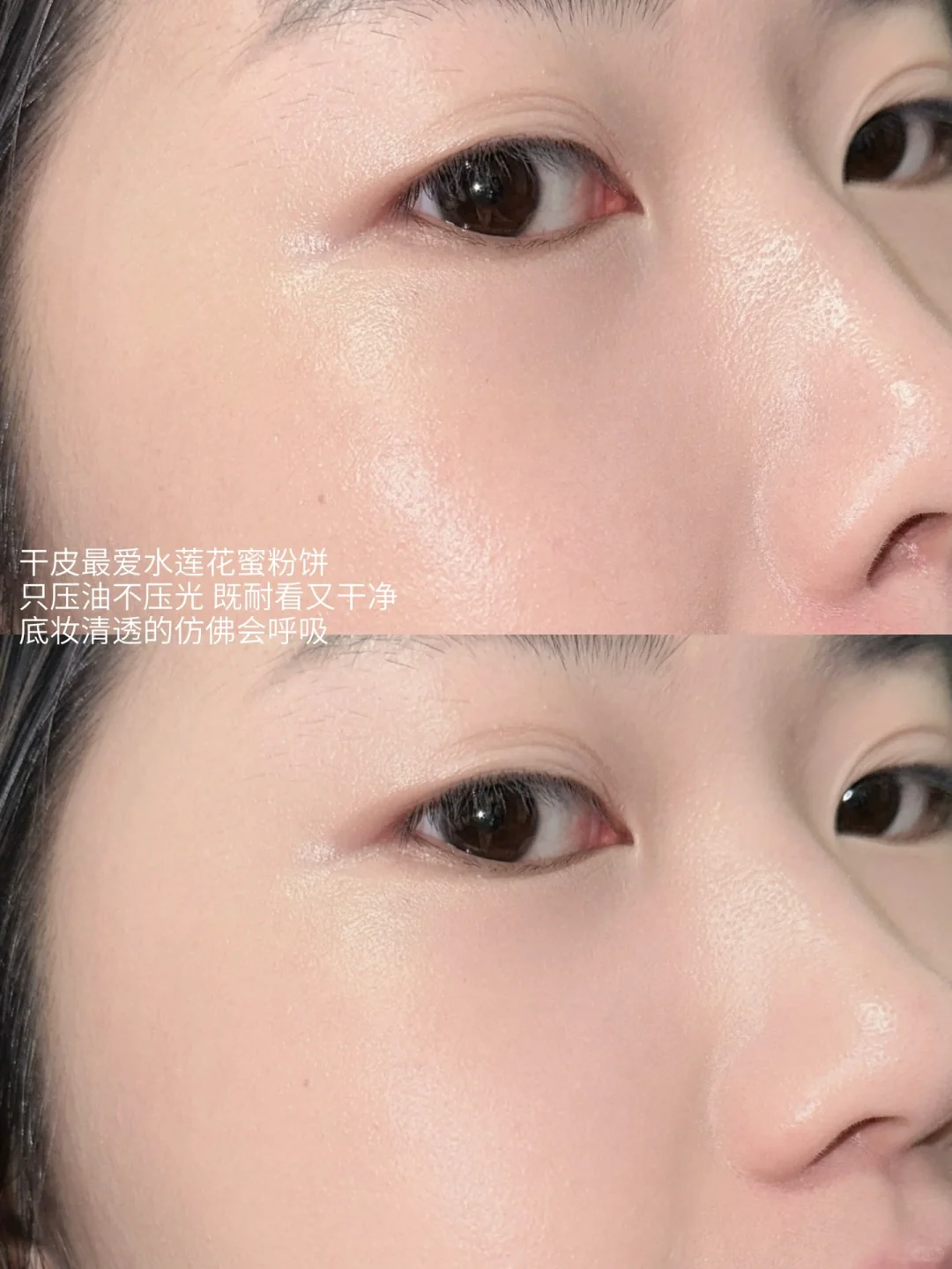 它是透明粉质,不会改变底妆原有的颜色,基本没什么遮瑕力,但粉质是这三块里面最细的,上脸带点微微珠光,不管定妆补妆都是只压油不压光,而且含有保湿成分,干皮多次叠加也不会斑驳起皮倒拔干,妆面永远是那么灵动耐看,就像阳光洒在脸上的那种清透光泽感,美的惨绝人寰!!!!