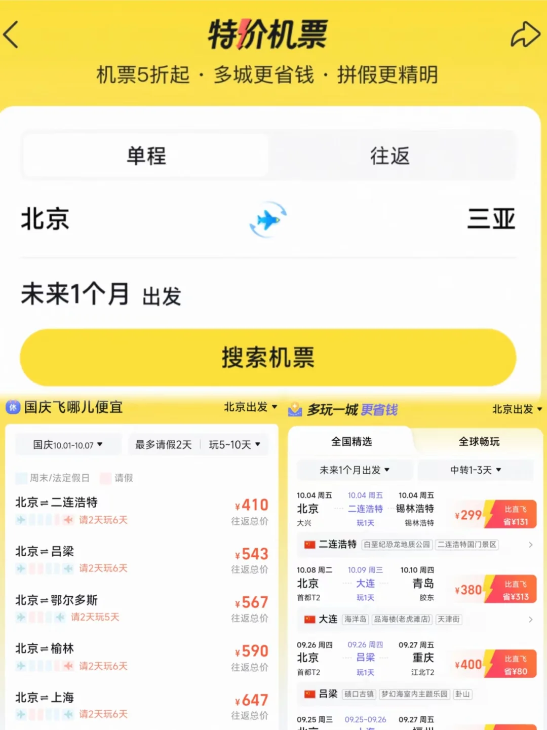 午后,收拾行囊,搭乘返程航班。打开飞🐷猪搜索“低价清单”,轻松预订返程机票,享受特价优惠,让归途也充满惊喜!