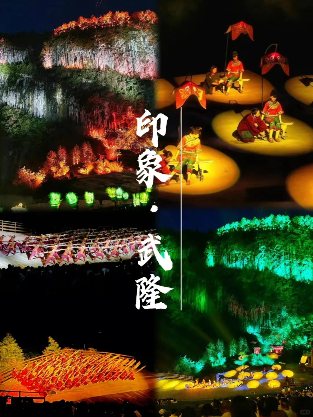 感受大自然的鬼斧神工,天龙桥、青龙桥、黑龙桥,每一座都让人惊叹不已。夜幕降临,“印象·武隆”拉开序幕,山谷中真情献唱,是巴蜀大地特有的风土人情。