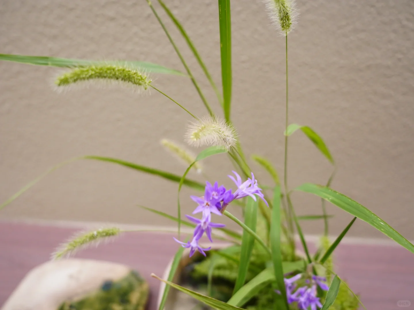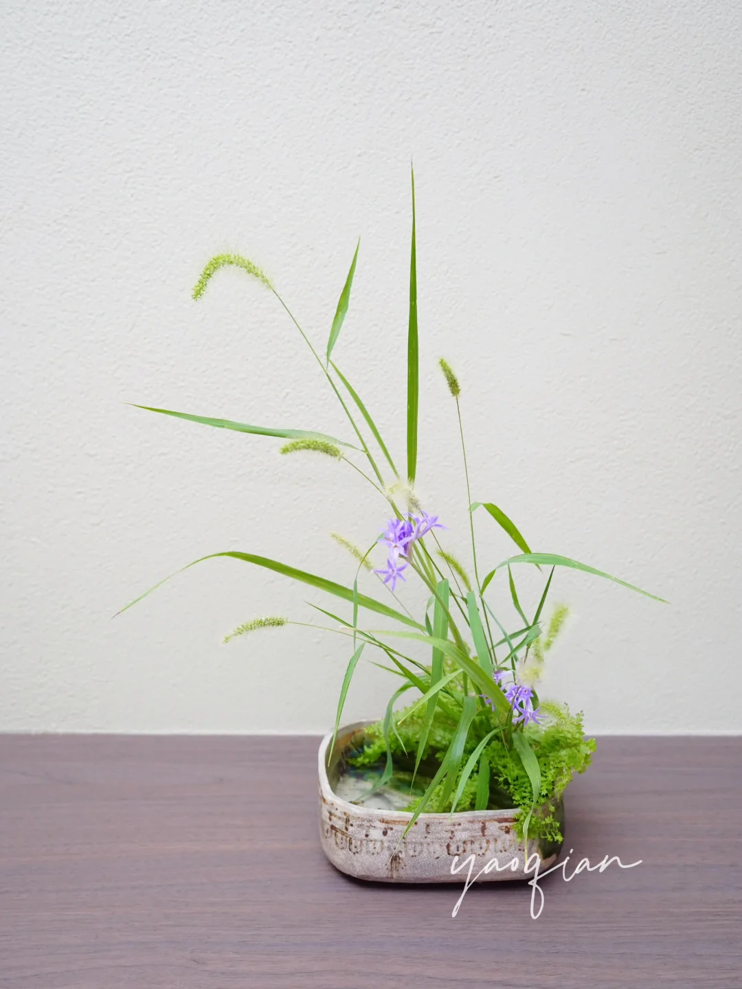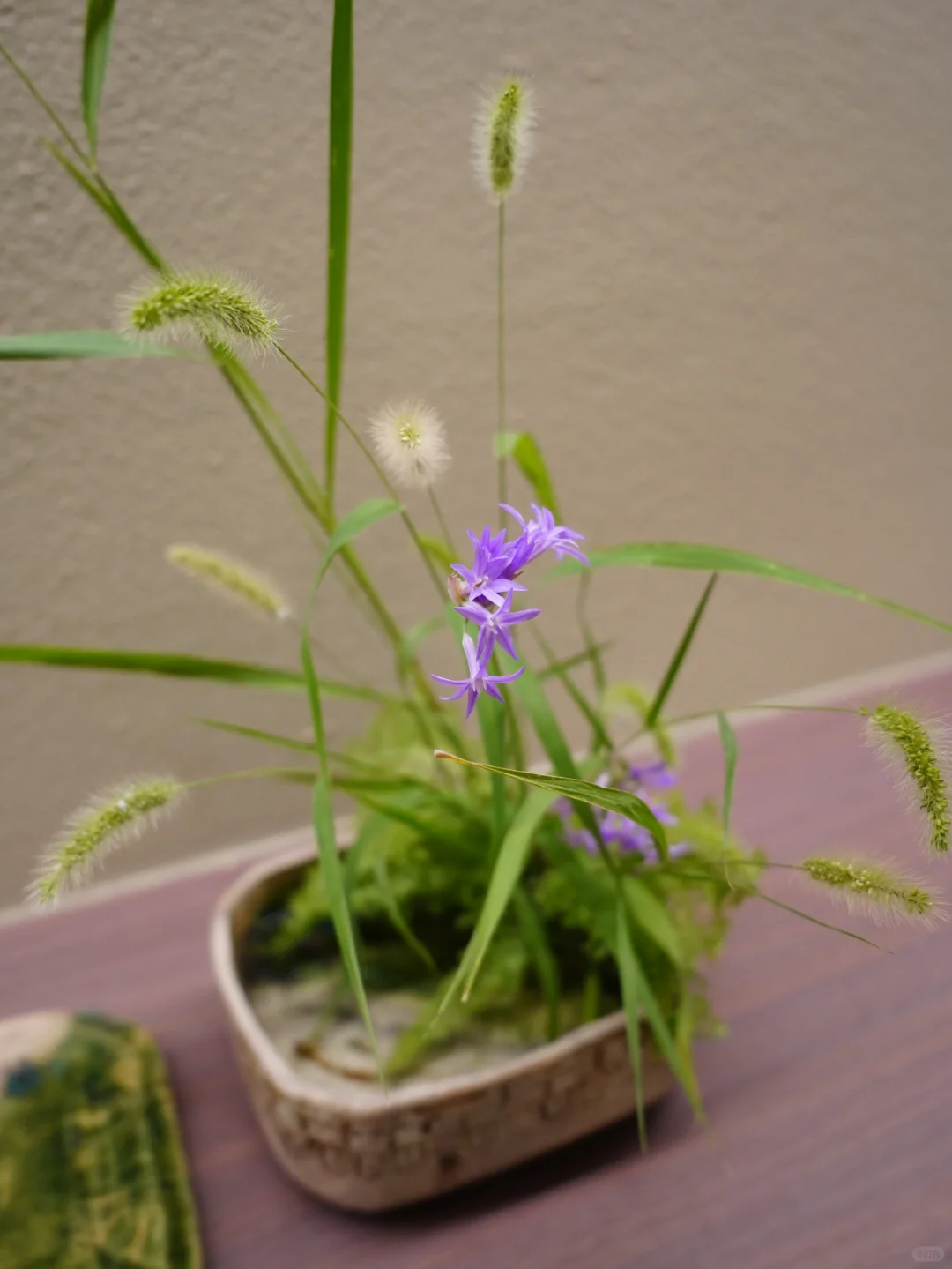 方寸盛花──在小小的水盘里展现出狗尾巴草的清纯与可爱,倔强与不服输的精神。
