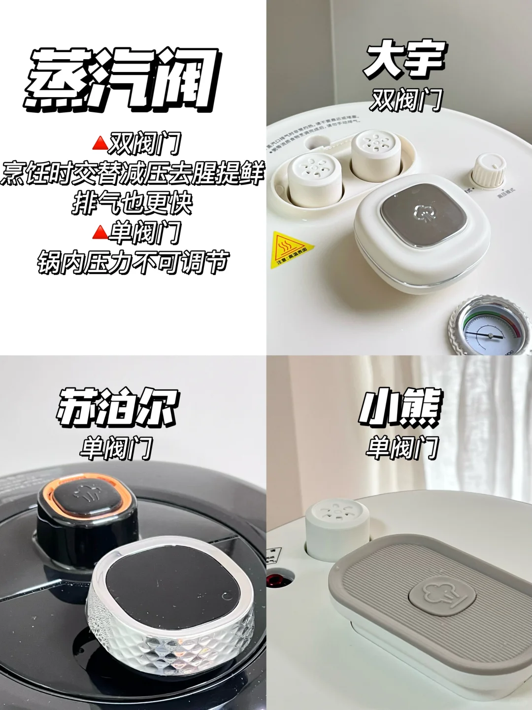 双蒸汽阀门在烹饪的时候可以交替加减压,去腥提鲜,而且排气也更快!