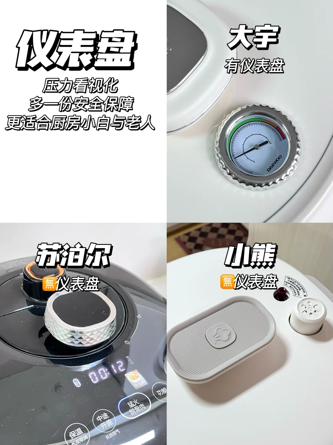 🔥如果你跟我一样平时不敢给压力锅排气,生怕会炸锅的,那就考虑带仪表盘的,压力可视化,更有安全感!