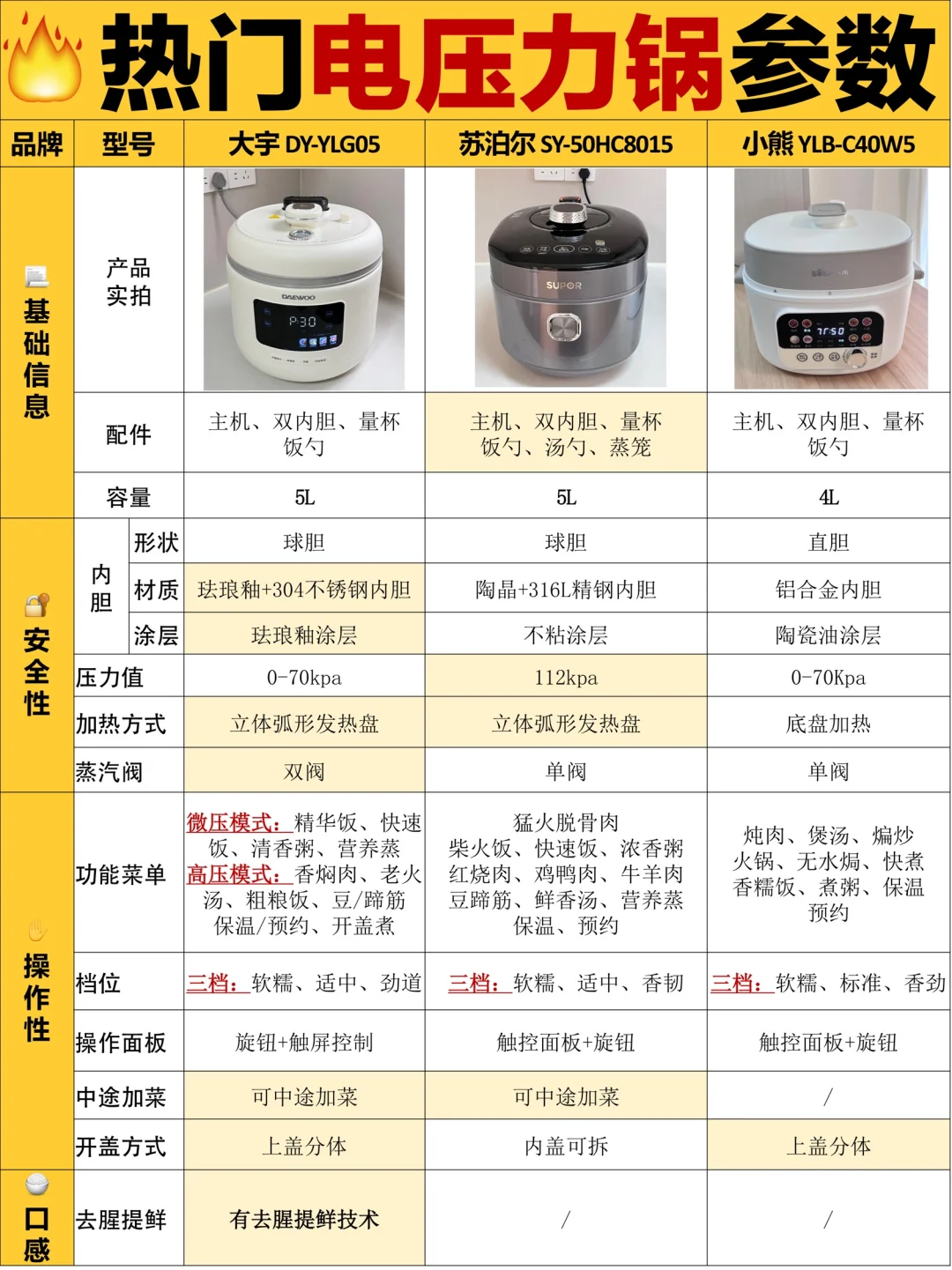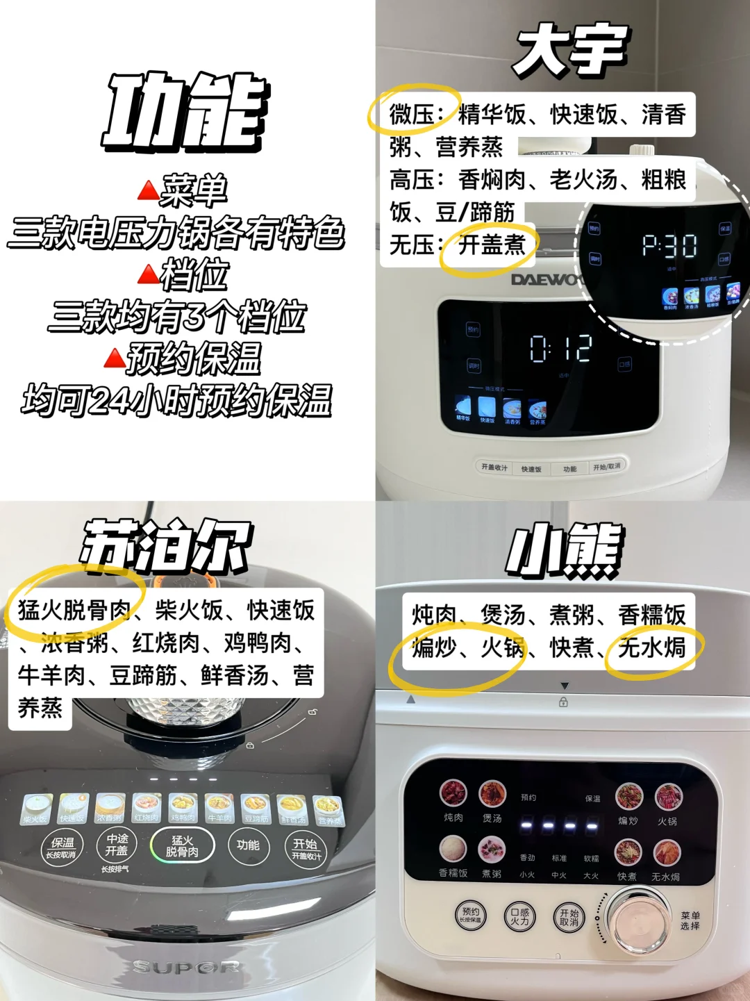 🌈我选了3款热门电压力锅:大宇电压力锅、小熊电压力锅、苏泊尔电压力锅进行实测,给需要的宝子们一个参考~