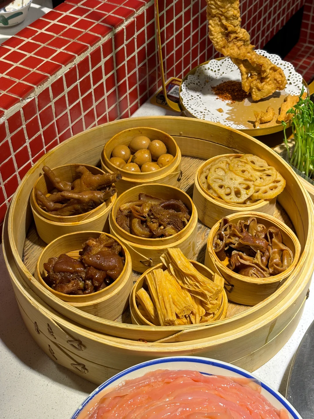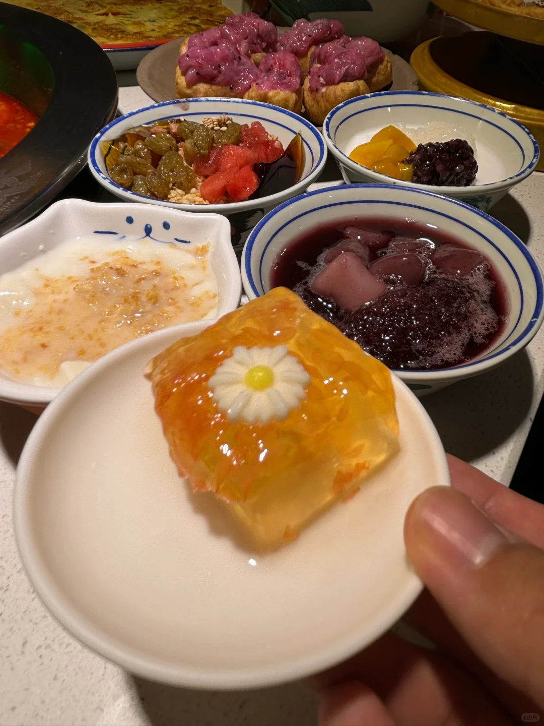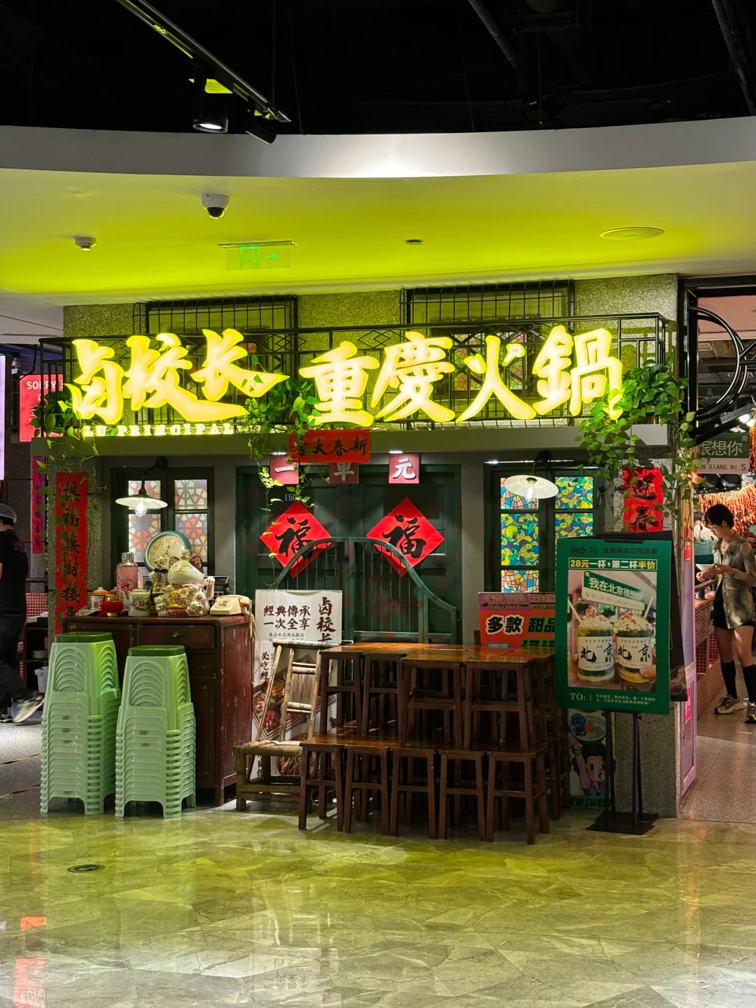 卤校长重庆火锅(北京总店) 我最近迷上了这家火锅店,他家的火锅食材很有特色,总是吃不腻! ⭐鸳鸯锅底就很浓郁,番茄锅微甜,辣锅也不刺激,涮什么都很好吃 ⭐店里有很多特色,夏季的时候可以品味蓝莓雪冰,感觉味道很清爽,草莓雪冰稍微有一点点甜味,也很解腻滴! ⭐除了冷饮之外,咱就是说他家的火锅食材也太丰富了吧! 鲜鸭肠都很新鲜,没有怪味儿,吃起来很有嚼劲 ⭐蒜香牛肉是腌制好的,能感受一阵浓郁香气 ⭐超级贡菜煎蛋是很有特色的一道菜,贡菜的脆和煎蛋的软完美的融合在一起,好吃极了