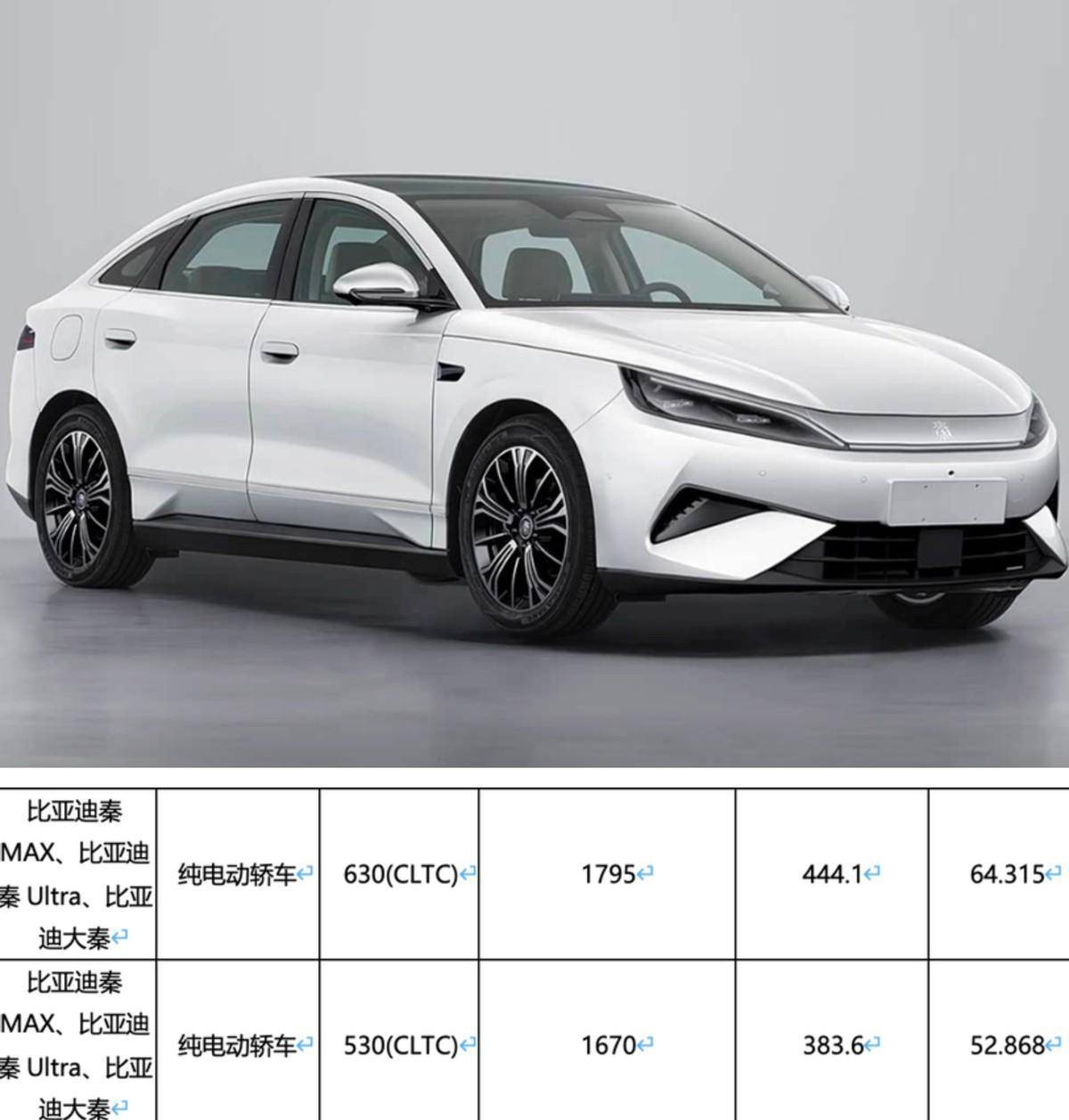 4.全新推出的,包括比亚迪海狮07EV,此前只有插混版本,此次推出纯电版。使用69.07kWh的电池包,纯电续航拉到了705公里。再比如可能定名为大宋和大秦的新车型,前者用最高82.7kWh的电池给到710公里的续航数字,大秦则是用64.3kWh的电池,交出了630公里的续航。