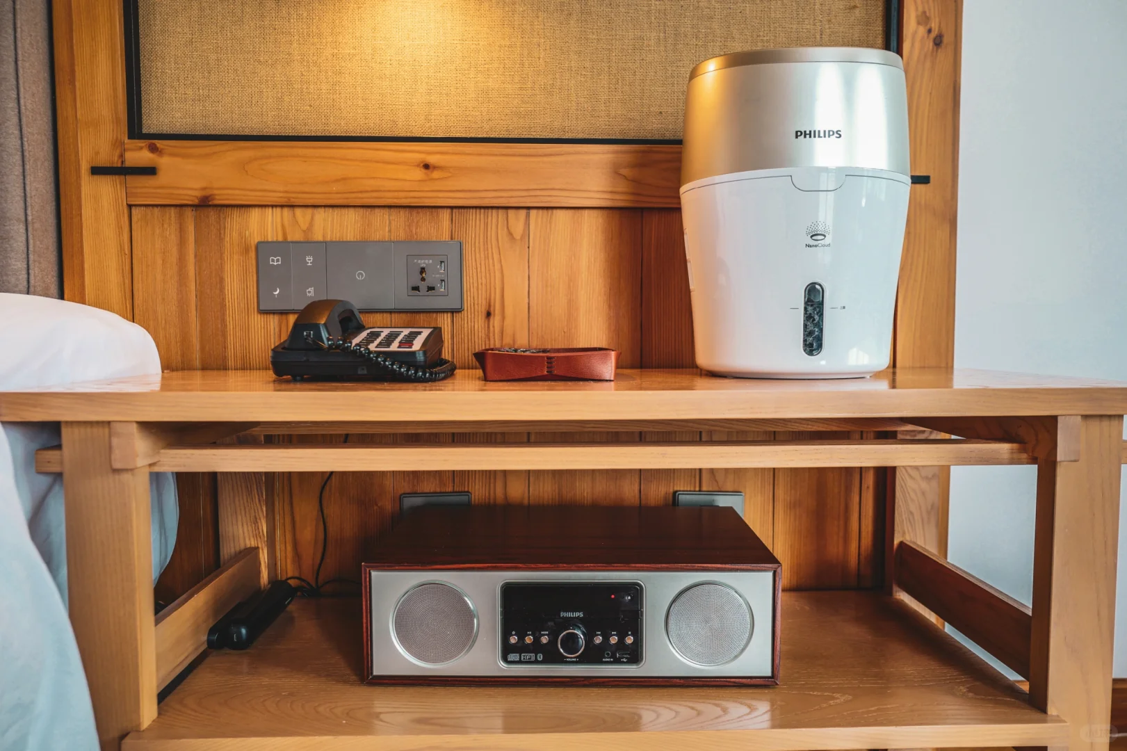 房间的设计简约大气,原木地板脚感很好,24小时弥散供养有安全感,戴森电吹风,加热式毛巾架,迷你吧免费,细节很可。