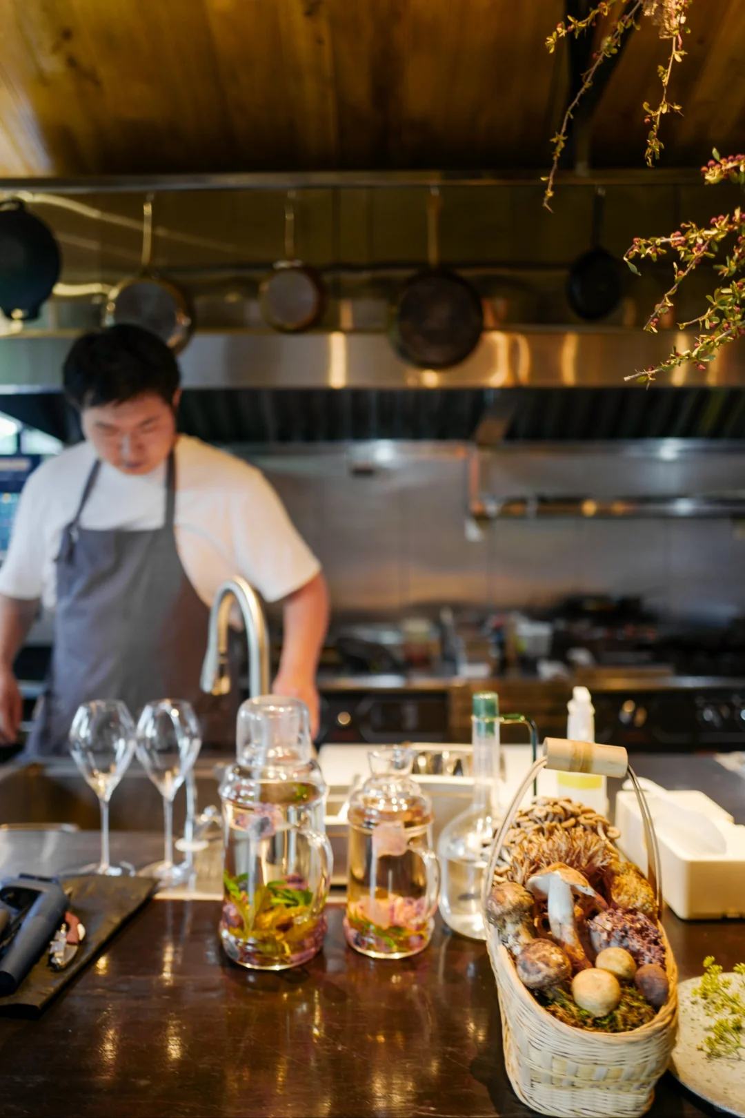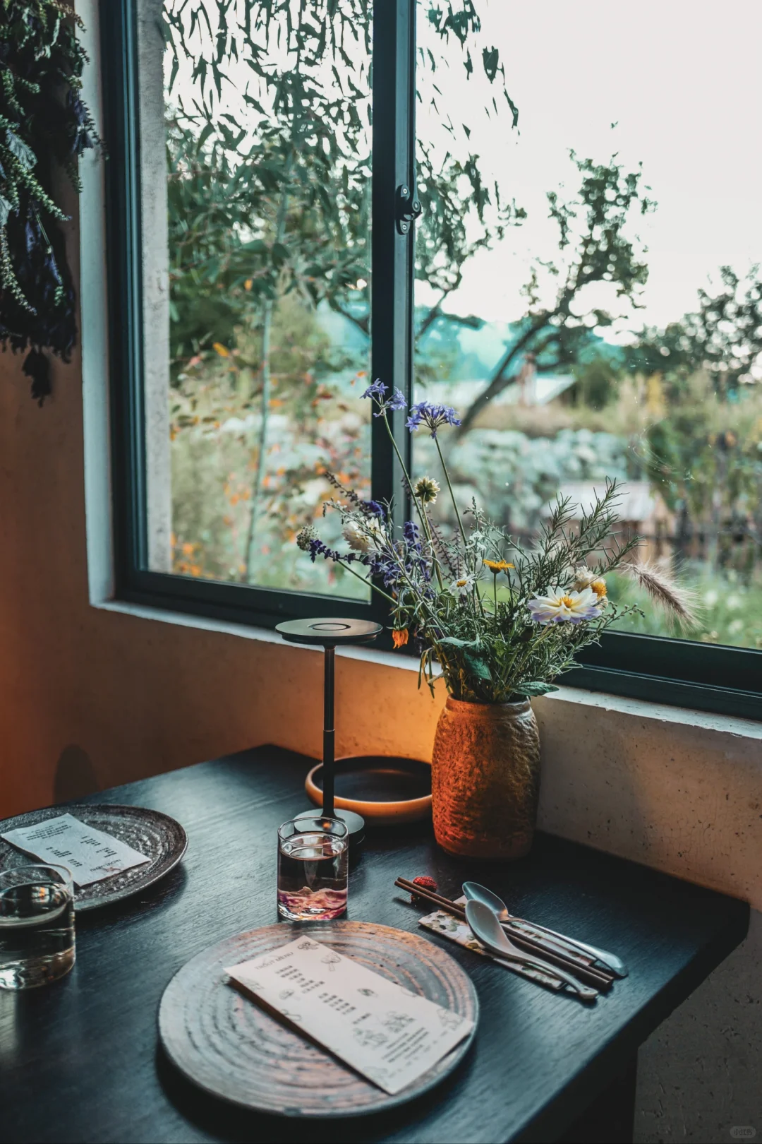 从进店的环境与餐具,就看出团队是用心做事的。定制的柴烧陶器的质感与手感很质朴,我之前在视频见过,没觉得特别,见到了实物才感叹真的是太有质感了。餐厅的插花,水杯,装饰都是用了心的。餐厅坐满大概12人,团队有7个人,这些都说明鳟鱼是一家严肃的餐厅,而不是来大理割一茬韭菜就走的。