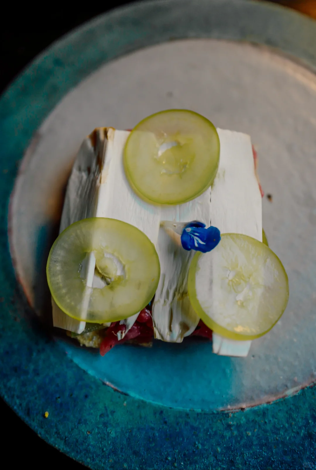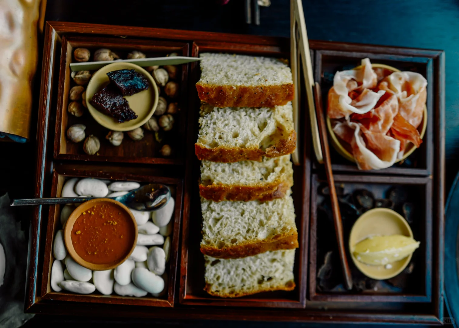 图二破酥粑粑,用猪油烤的面包,搭配了黄油,三年剑川火腿,左下角的酸蜂蜜非常的特别,是猴子找来的很小众的食材。
