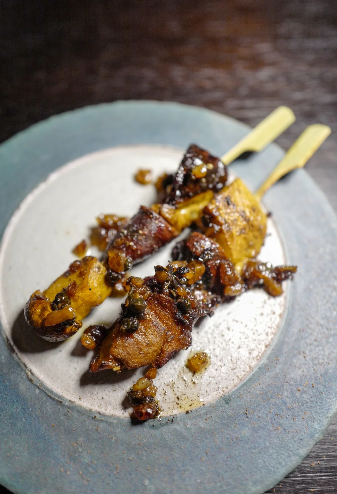 图八见手青,与鸡胗鸡心串在一起做成了烧鸟的模样,冷小姐夸比烧鸟店做的都好吃。