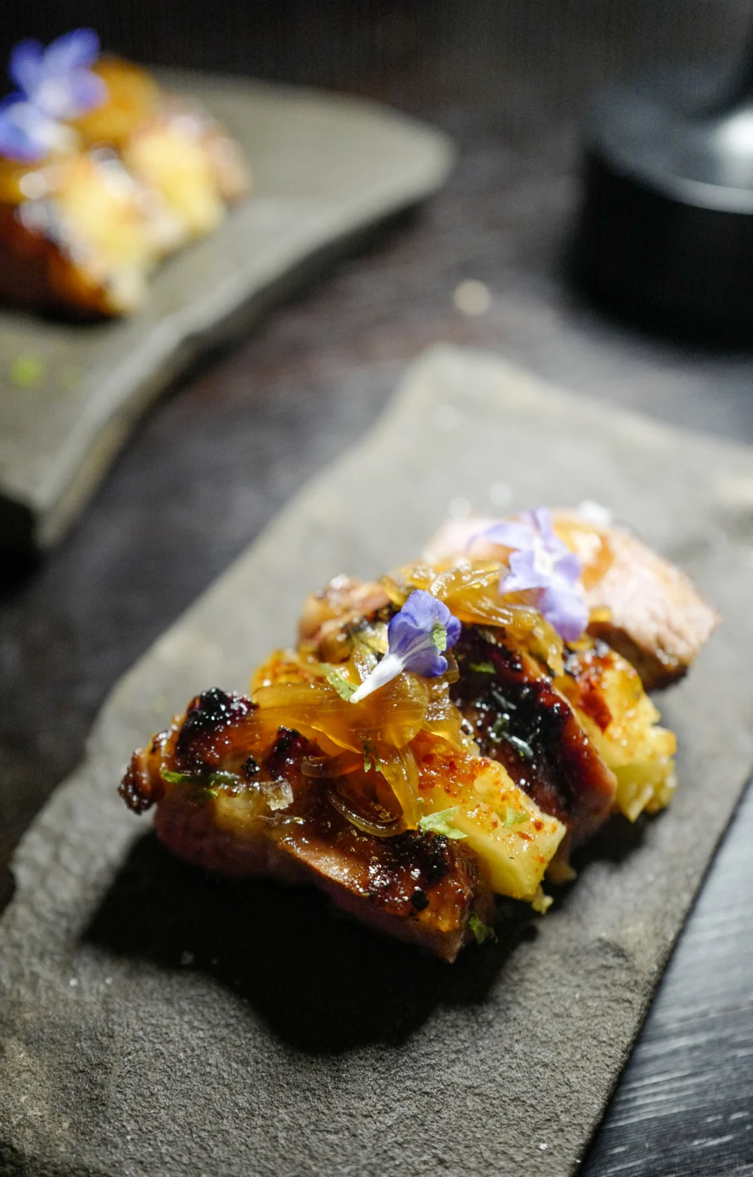 图九冬瓜猪,碳烤冬瓜猪与烤菠萝一起吃,有爆浆感,吃完感叹人生太美好。