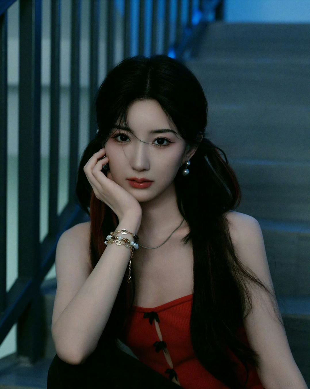 毛晓彤红色抹胸上衣➕双马尾,甜酷度拉满啊~我好吃这种风格[好喜欢]