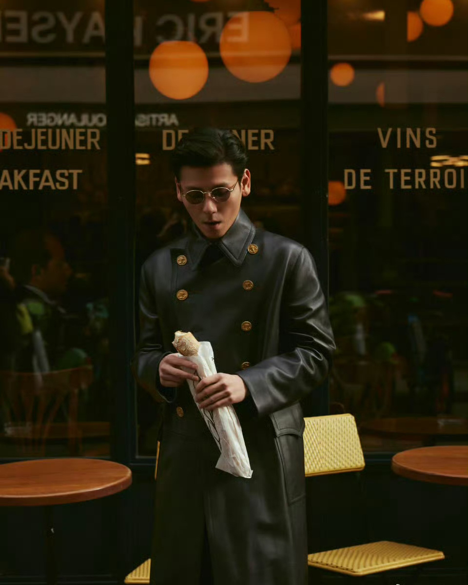 蒋奇明巴黎时装周路透太有范儿了吧!皮衣一穿,小嘴一抿[好喜欢]这不一把子被吸引住