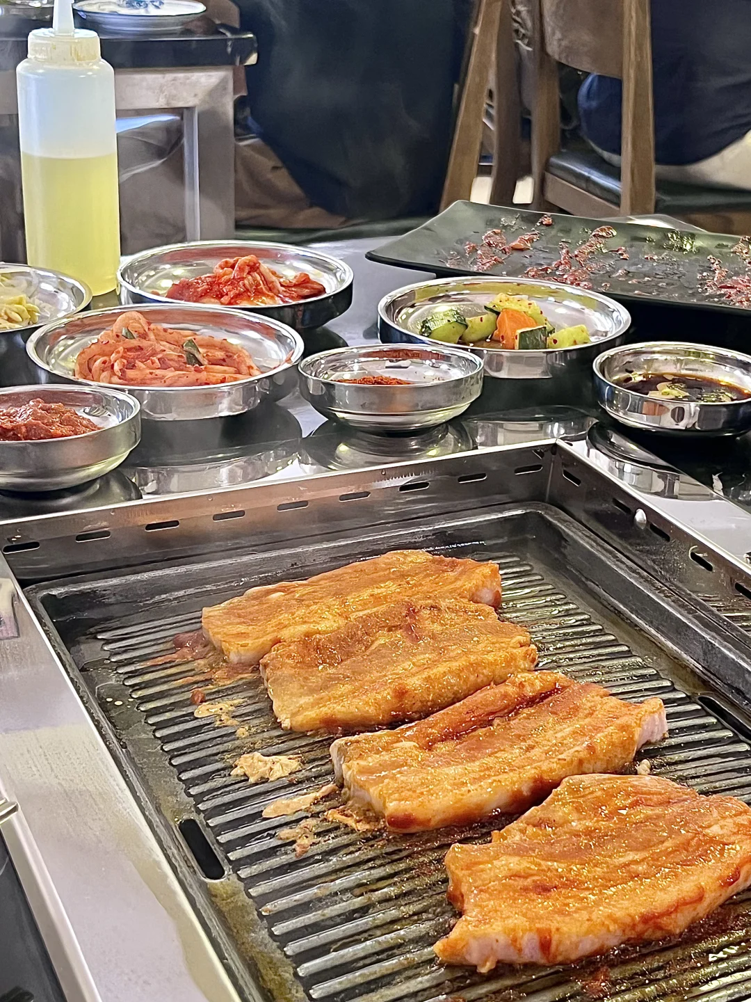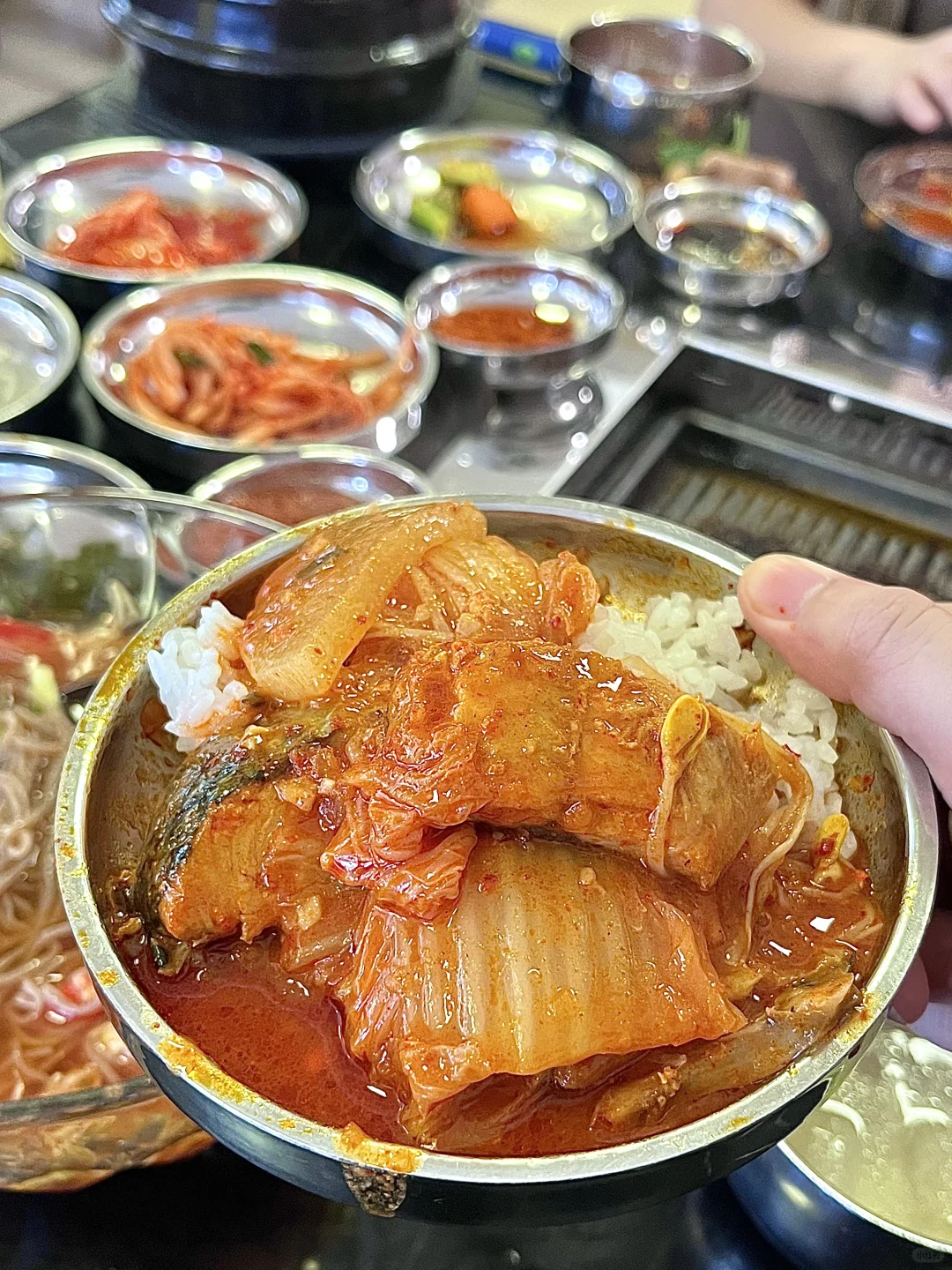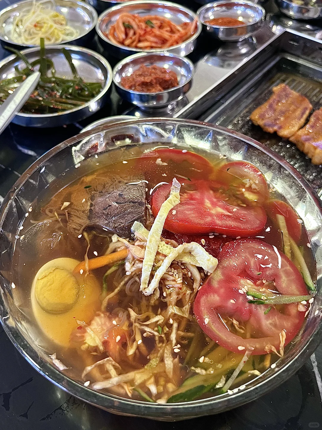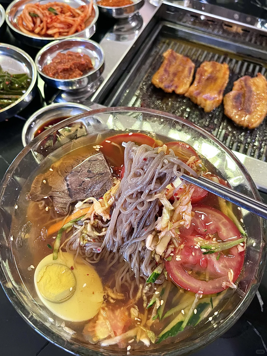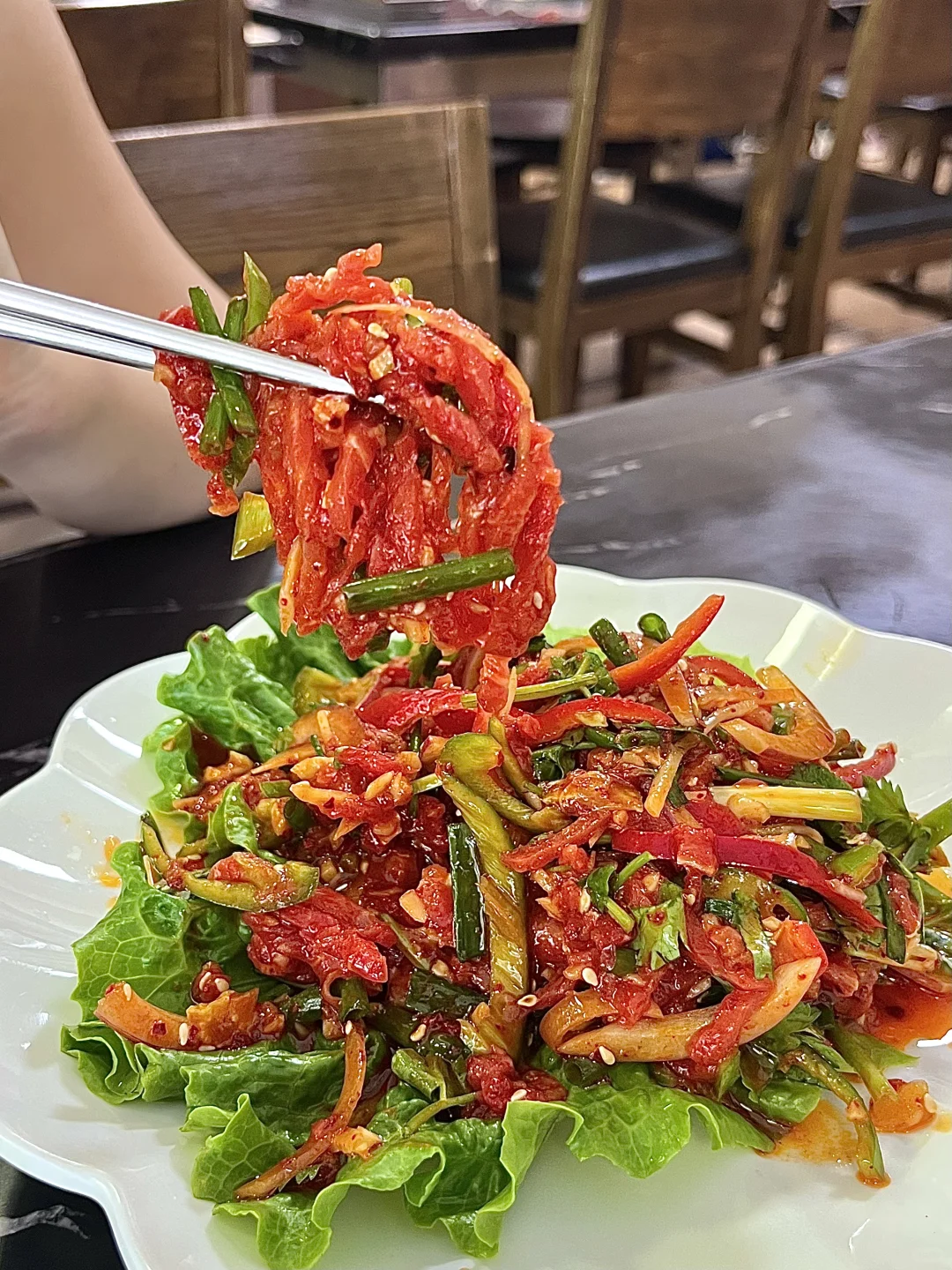 · 📍 韩城馆(富华道店) 周末跟朋友来吃这家!又来吃了 - 🥣炖带鱼好下饭!有好多块带鱼 鲜辣,光汤都能炫几碗饭 🍜冷面也好吃!不是有嚼劲那种面 是软滑的有冰块清清凉凉的酸甜口😋 🥩生拌牛肉好吃是好吃,吃多了腻 很嫩有点辣辣的份量好足 - 烤肉好吃但是不知道为啥烤起来很大股猪味[失望R] 烤熟了又不怕,还有紫苏叶包着吃😋 -