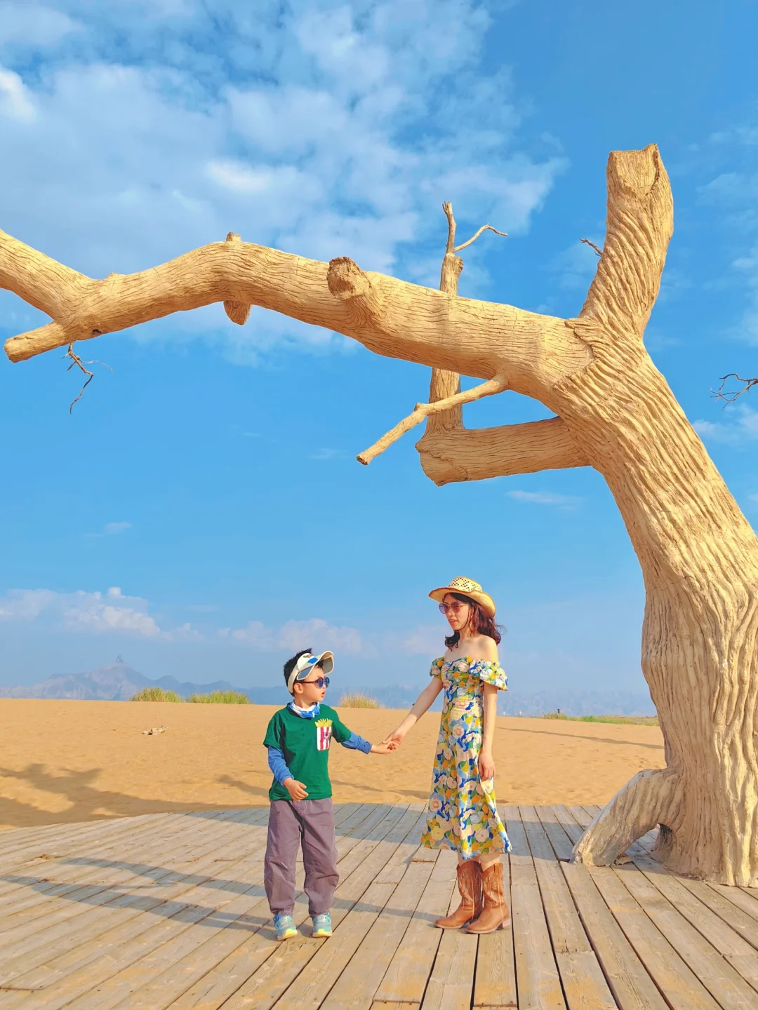 一号码头坐船(98r)到达枯树区,可以翻沙坡或者小火车、越野车到达沙漠公路