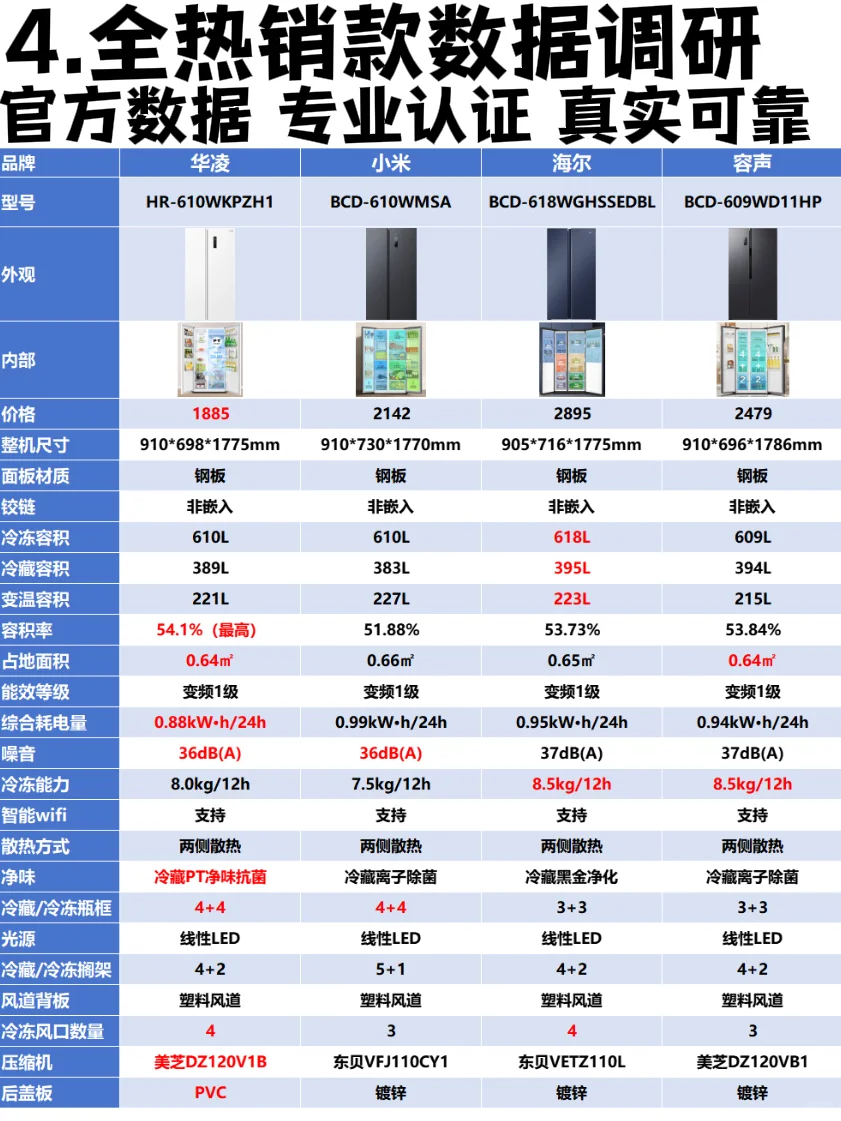 冰箱大牌热销款,关键数据来源于官方,真实可靠哦,这些数据商家都是经过专业机构检测认证基本不会假,值得参考,有问题可以问我哦。