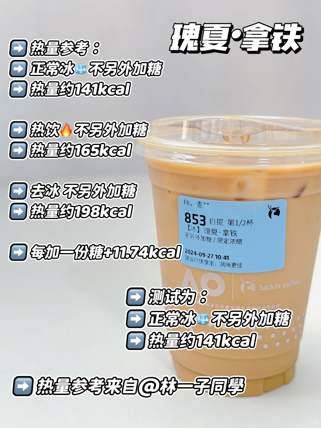 测试为默认去冰 不另外加糖 热量约280kcal🔥✔