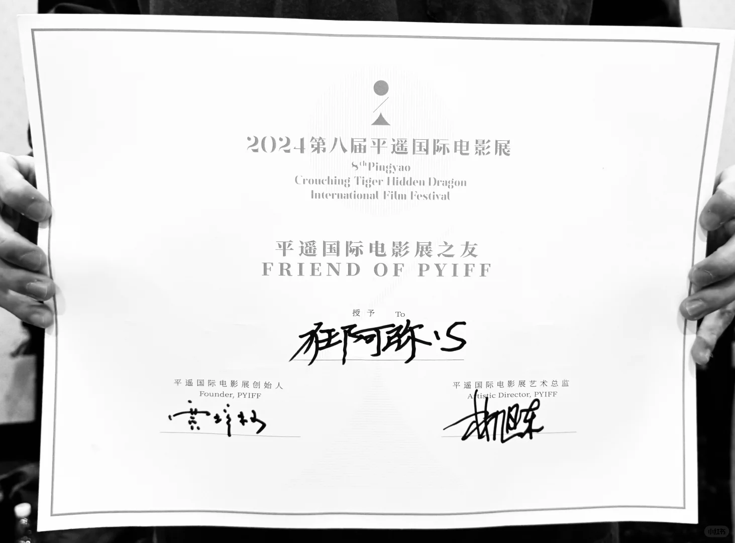 昨晚收到了一个惊喜,贾樟柯导演和平遥影展给我和s颁了一个奖状——平遥国际电影展之友