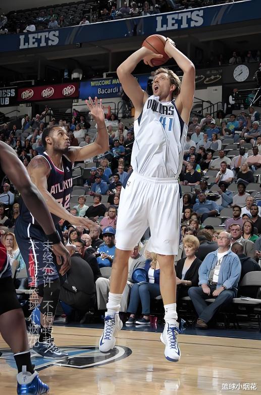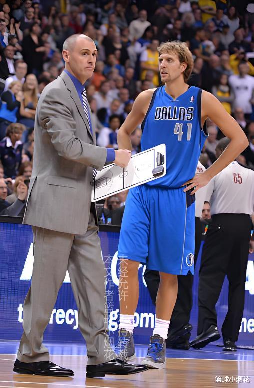 为何诺维斯基要如此孤注一掷,因为真没有时间了,彼时诺维斯基已经31岁了,在当时管理层和球迷的普遍认知下,白人球员一旦过了32岁最多33岁,竞技状态一年下一个大台阶,而事实也的确如此,今年的场均23分,已经是诺维斯基生涯中后段的最高分了,很多人都不知道,仅仅在夺冠的后一年,诺维斯基的进攻效率就开始暴跌,本赛季还是52%+39%,下个赛季直接就是45.7%+36.8%,进攻效率从119,直接爆降到110.