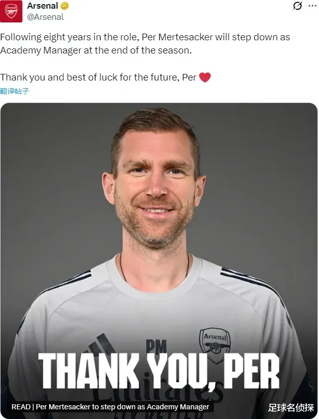 官方:在履职8年之后,阿森纳青训主管默特萨克宣布将在赛季结束后离队。