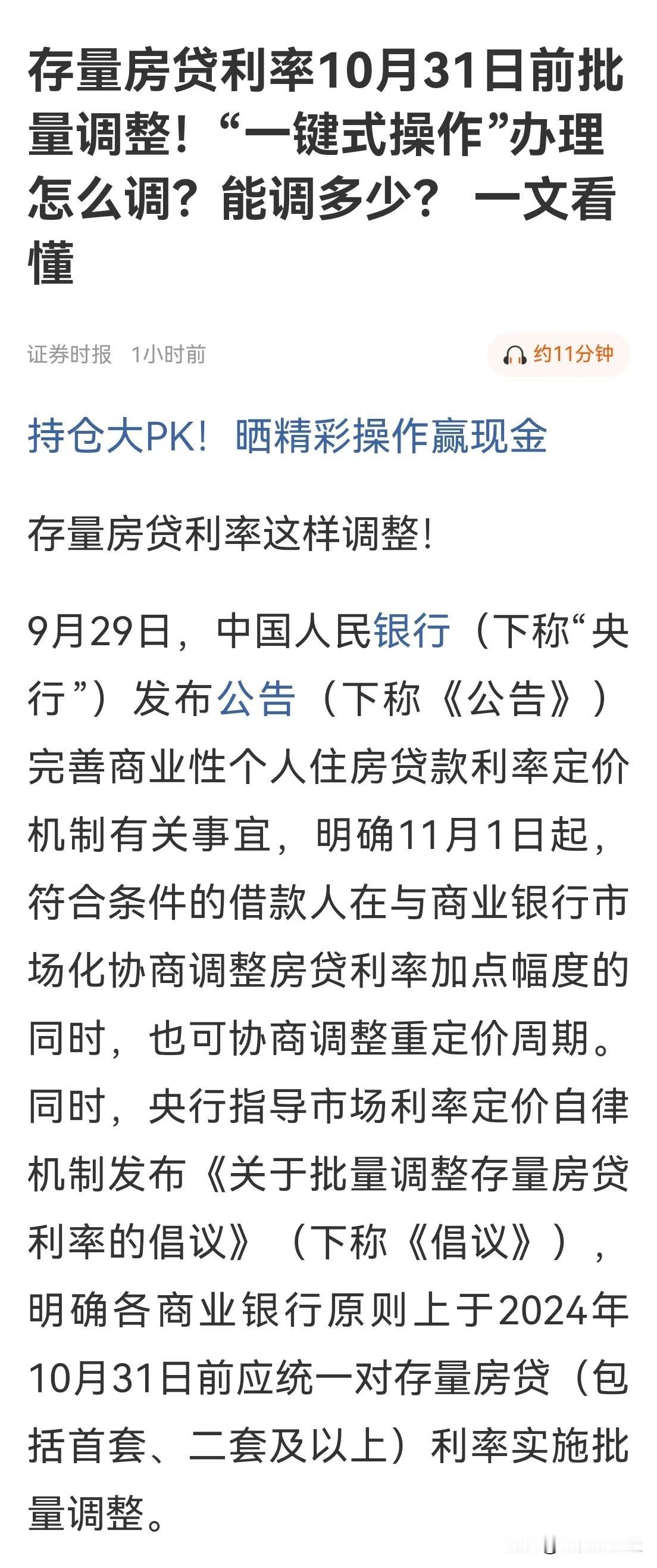 #首套二套存量房贷利率批量下调##不再区分首套二套房#央行:首套、二套房存量房贷利率批量下调 平均降幅0.5%左右,10月份底之前调整完毕。 上海、广州,深圳出台松绑楼市限购政策,各自尽力,广州晨猛。
