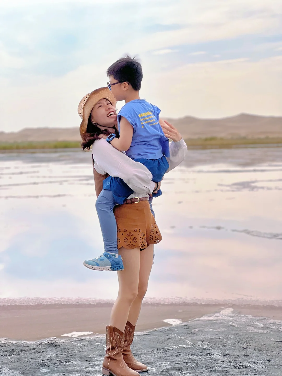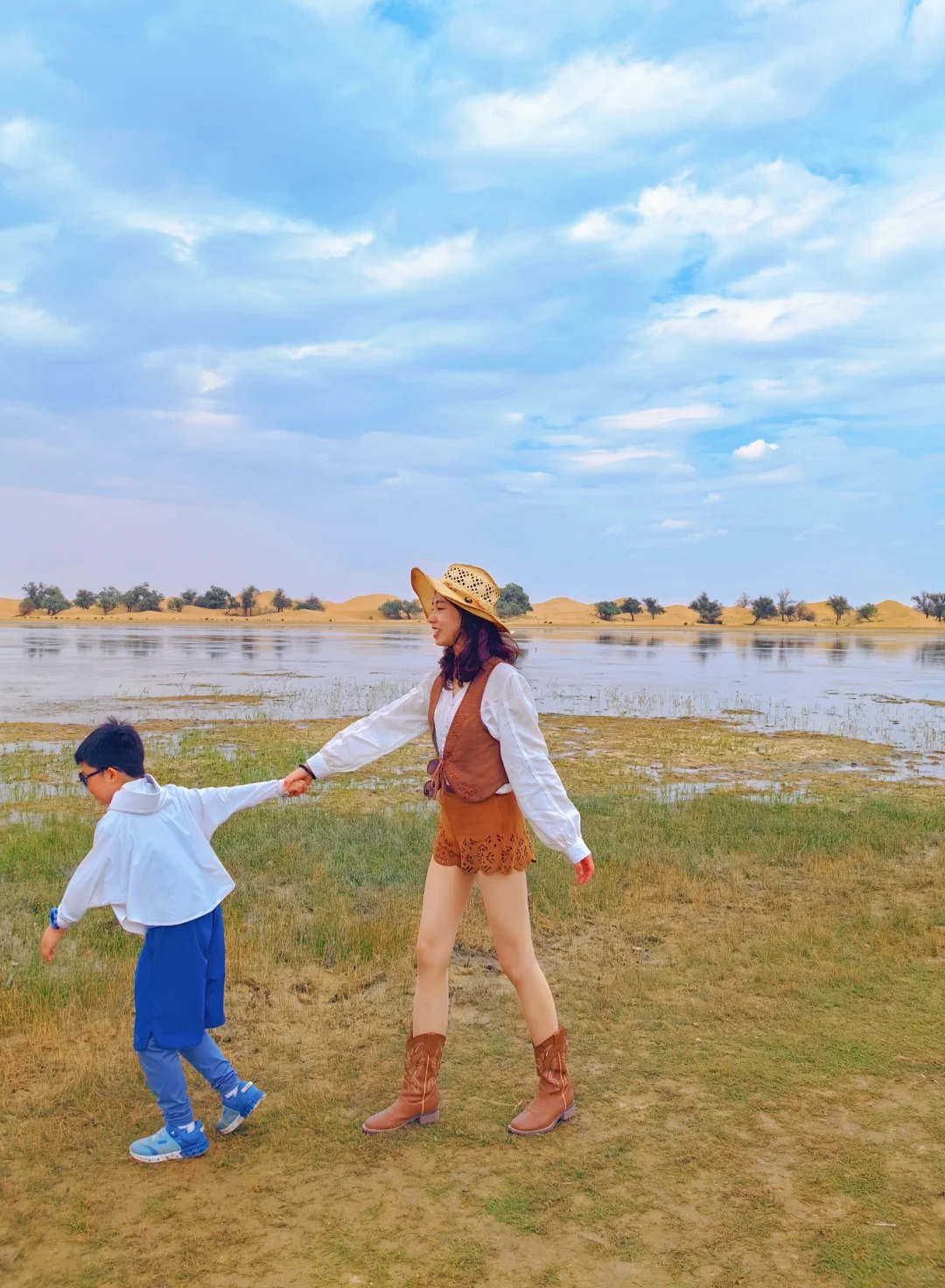 穿越沙漠去看湖,很佩服向导,沙漠里🈚标识,但是他能准确找到湖👍