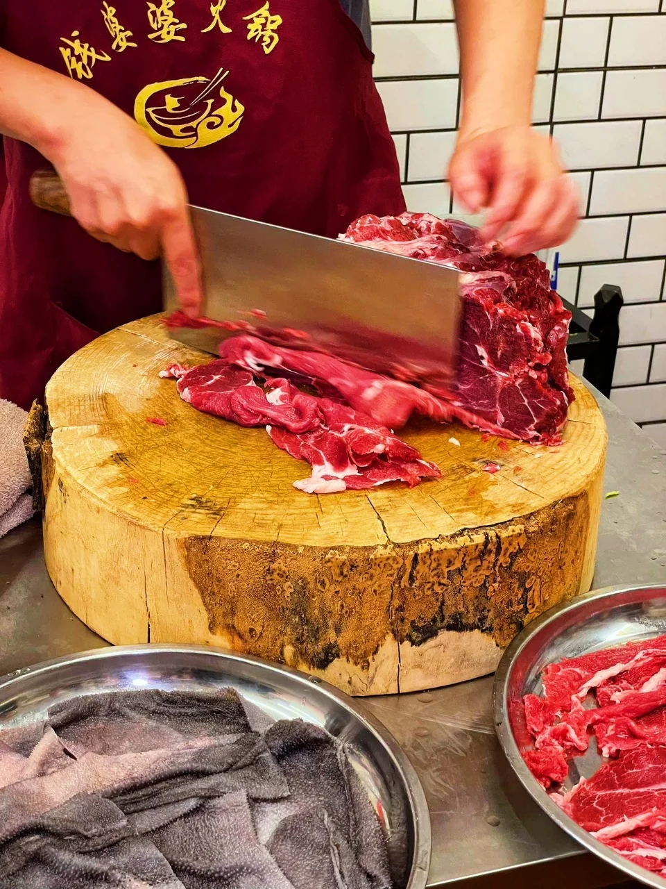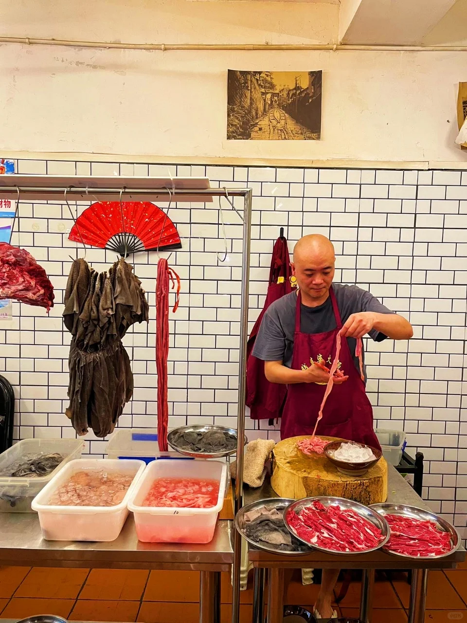 🥩现切吊龙肉质鲜嫩,牛肉纹理清晰口感醇厚。手撕屠场毛肚脆嫩爽口,七上八下正合适。鹅肠处理得超干净,吃起来满足感爆棚。还有大刀腰片,一点腥味都没有。😉