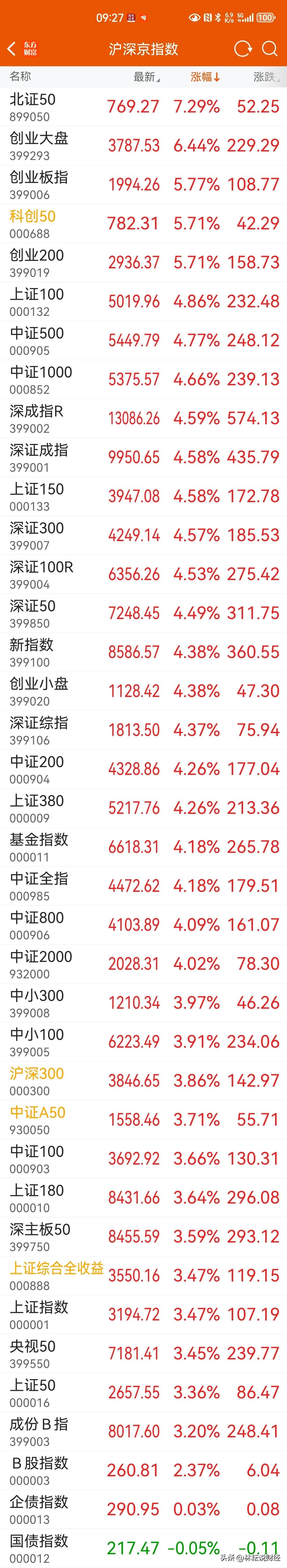 #林耘的投资日记##a股# 疯狂表演!沪综指高开近百点至3194点,直取3200;证券与地产比翼齐飞;北证50大涨7%领涨分市场指数。 老林一边喝茶去,看你们手舞足蹈。