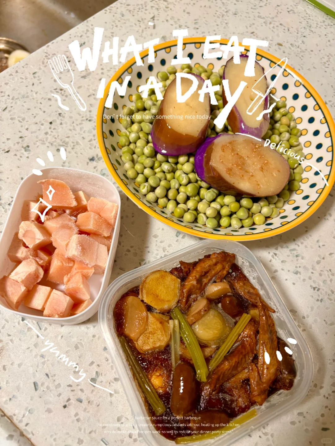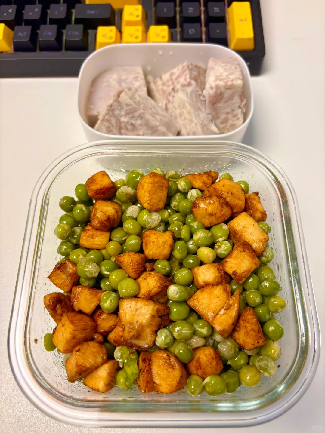 3⃣️晚:豌豆炒鸡胸肉、芋头(4.2💰)