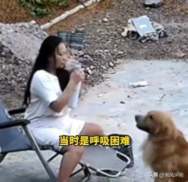 就在这时,家中的狗狗注意到了主人的困境,它毫不犹豫地冲上前去,用嘴叼起掉落的氧气瓶,小心翼翼地送回到主人的身边。女子看到狗狗如此贴心的举动,心中充满了感激和温暖。