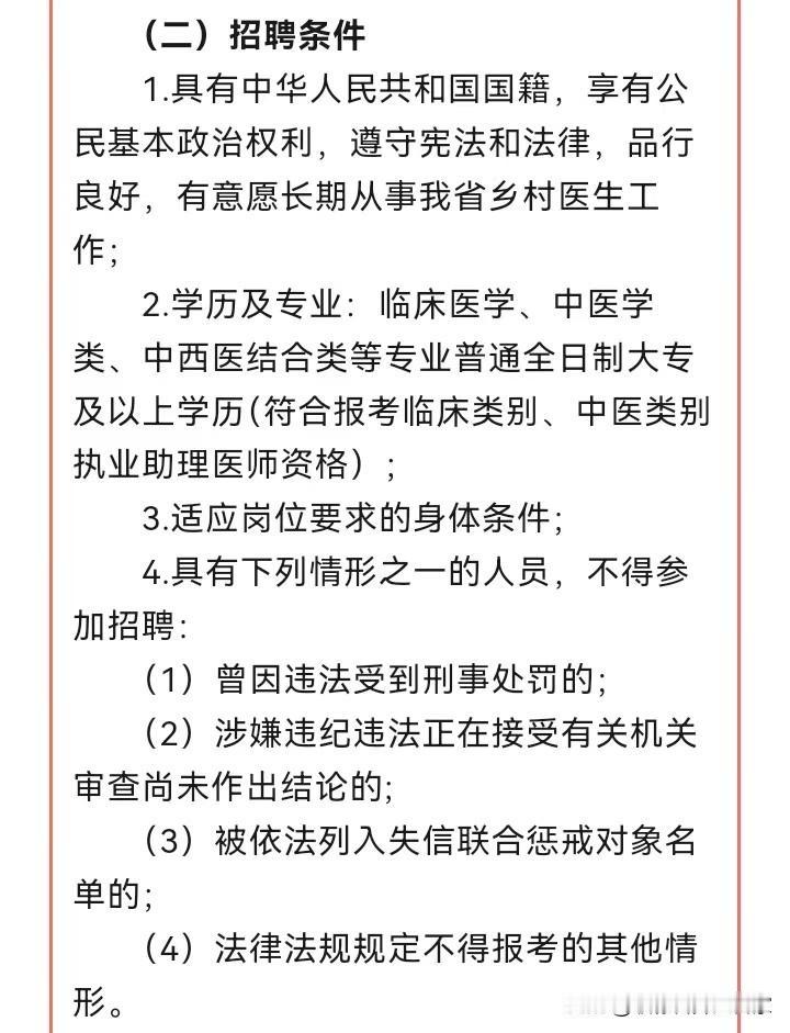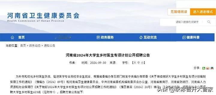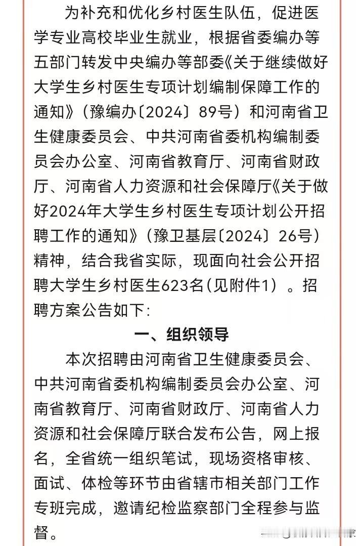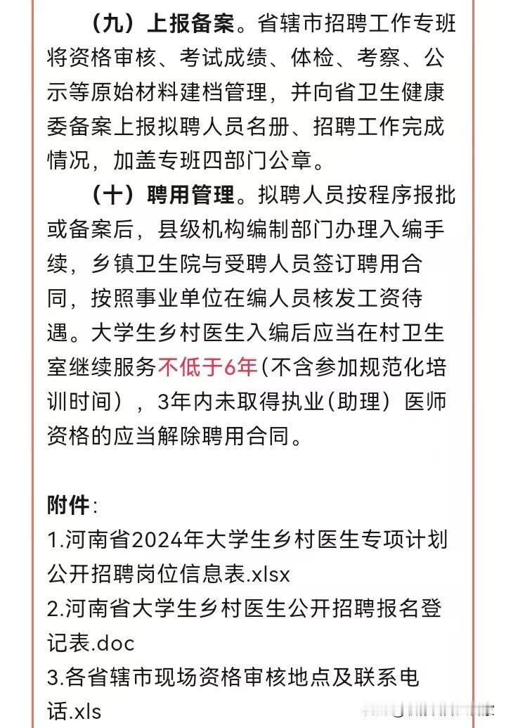 河南省2024年大学生乡村医生专项计划公开招聘公告已发布,医学专业毕业生可以按要求报名啦!(上述为附件首页)完整版附件下载可留言! #医学##临床医学##职称论文##职称##医学生##医生##日常医学科普#