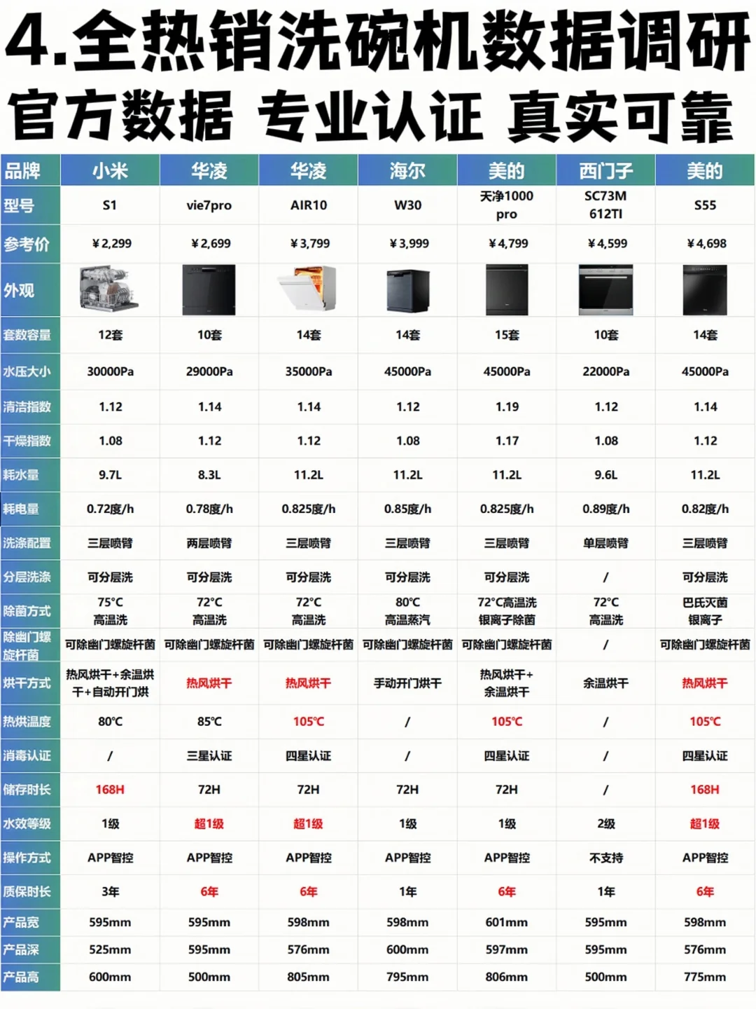洗碗机大牌热销款,关键数据来源于官方,真实可靠哦,这些数据商家都是经过专业机构检测认证基本不会假,值得参考,有问题可以问我哦。