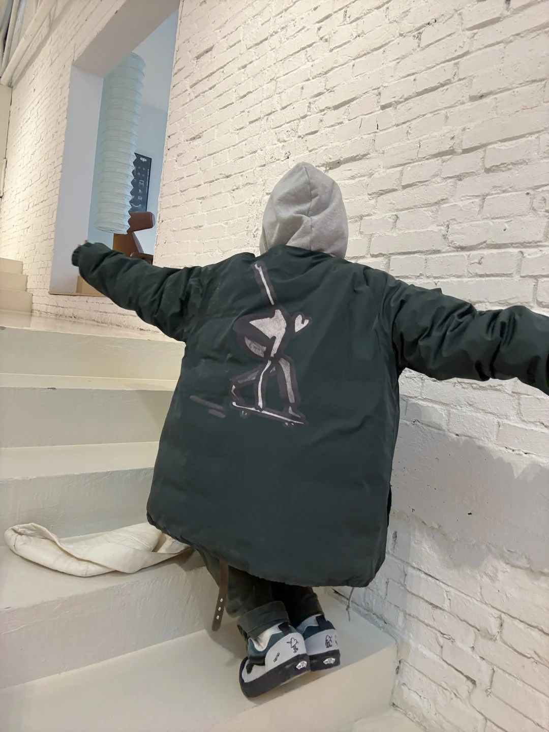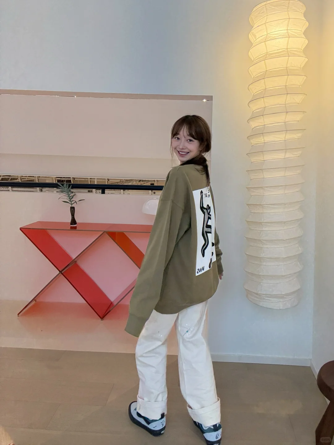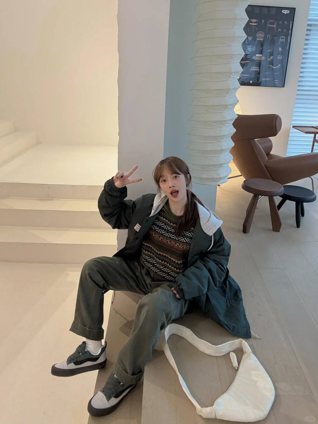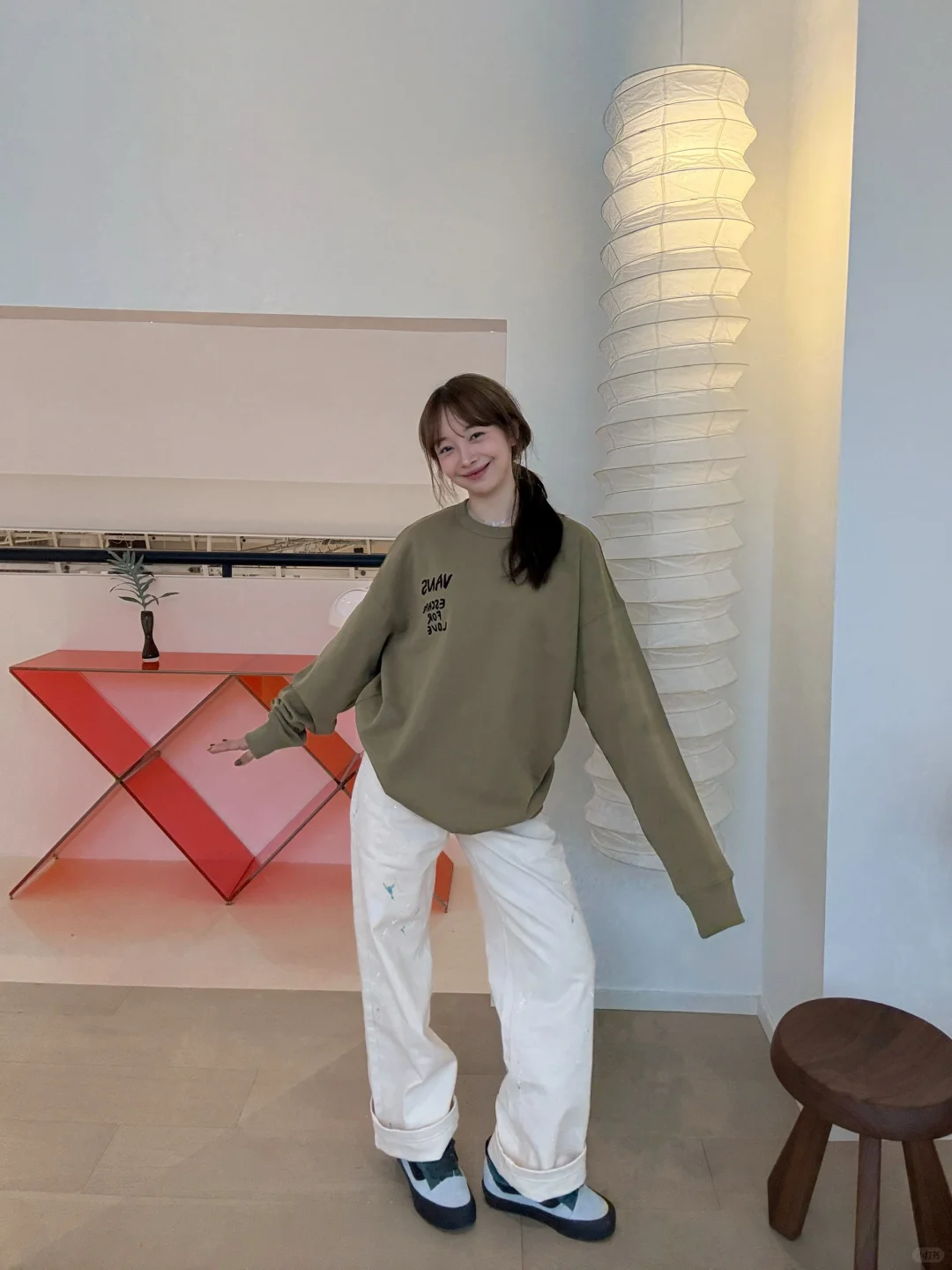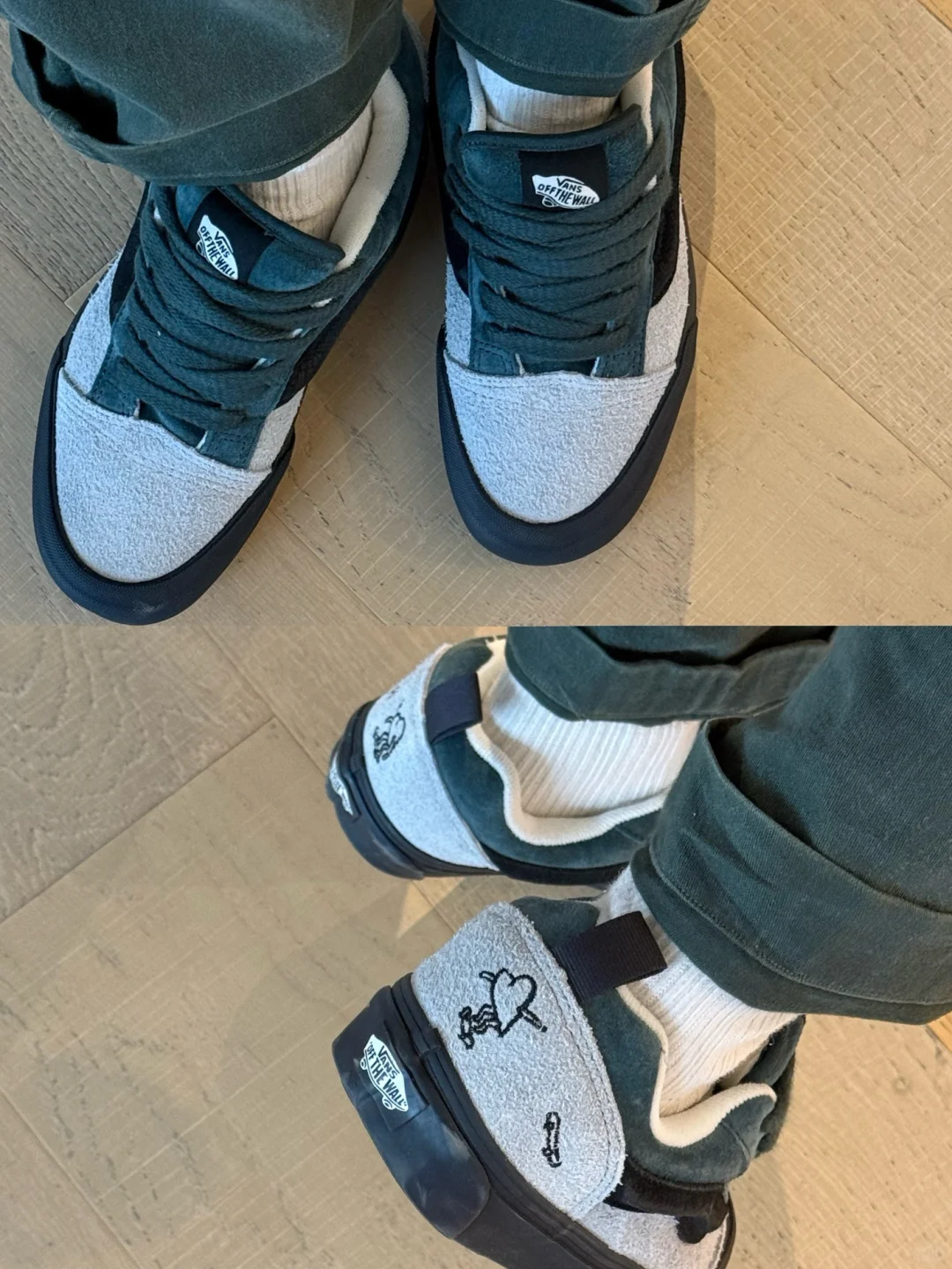 这周的OOTD基本都穿的Vans和艺术家Bolin的联名款很喜欢拥有了全套。 搭配了两个look分享给大家 第一个look休闲别致的卫衣帽棉服搭配了一个复古针织背心和低饱和的休闲裤,整个墨绿系时髦感一身。 第二个look的芥末黄绿卫衣搭配了简单白牛仔裤,和墨绿Vans面包鞋一搭配就很有层次感。 两个look搭配的面包鞋都是Vans x Bolin合作系列,鞋尾有可爱的刺绣心形头滑板小人图案,连鞋底都是涂鸦水晶底,它的包裹感真的很舒服,设计也很个性,整个精致度满分了。