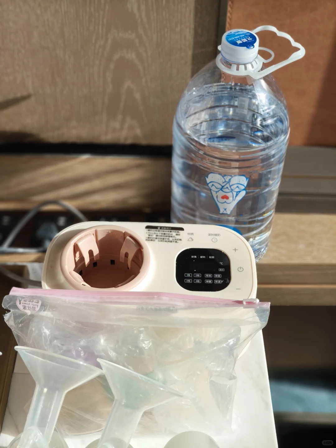[红色心形R]到酒店后便携消毒柜、便携奶瓶刷、恒温壶,吸奶器,我准备了手动的方便在路上用,常用的电动的也带着到酒店可以用,摇奶器必备,方便摇奶暖奶