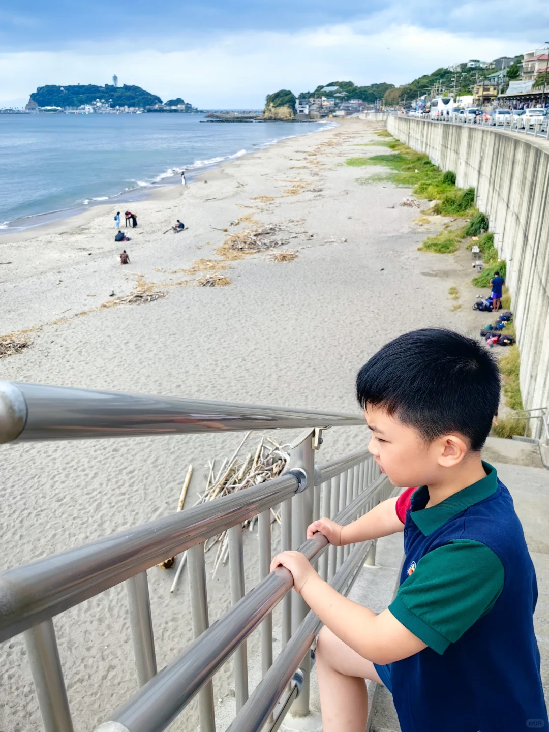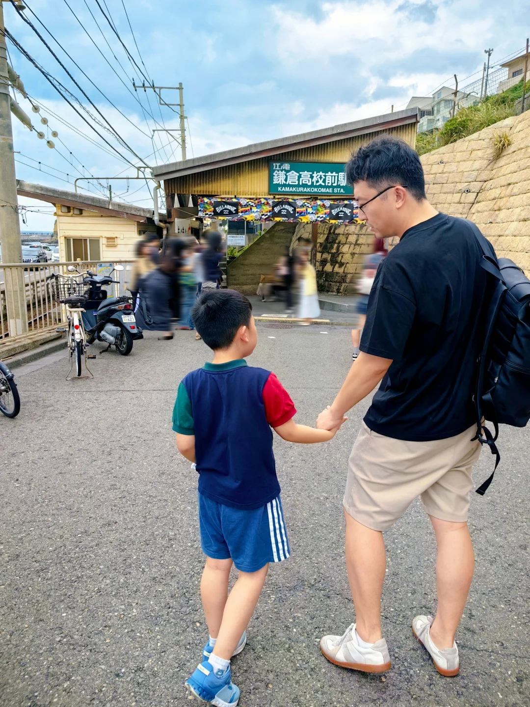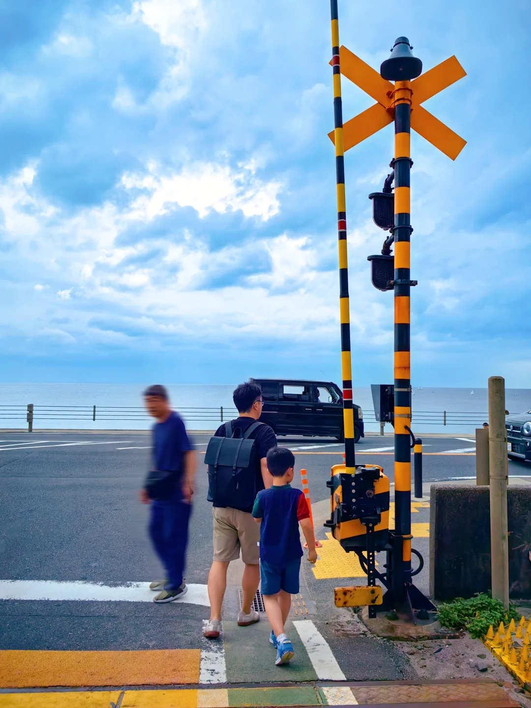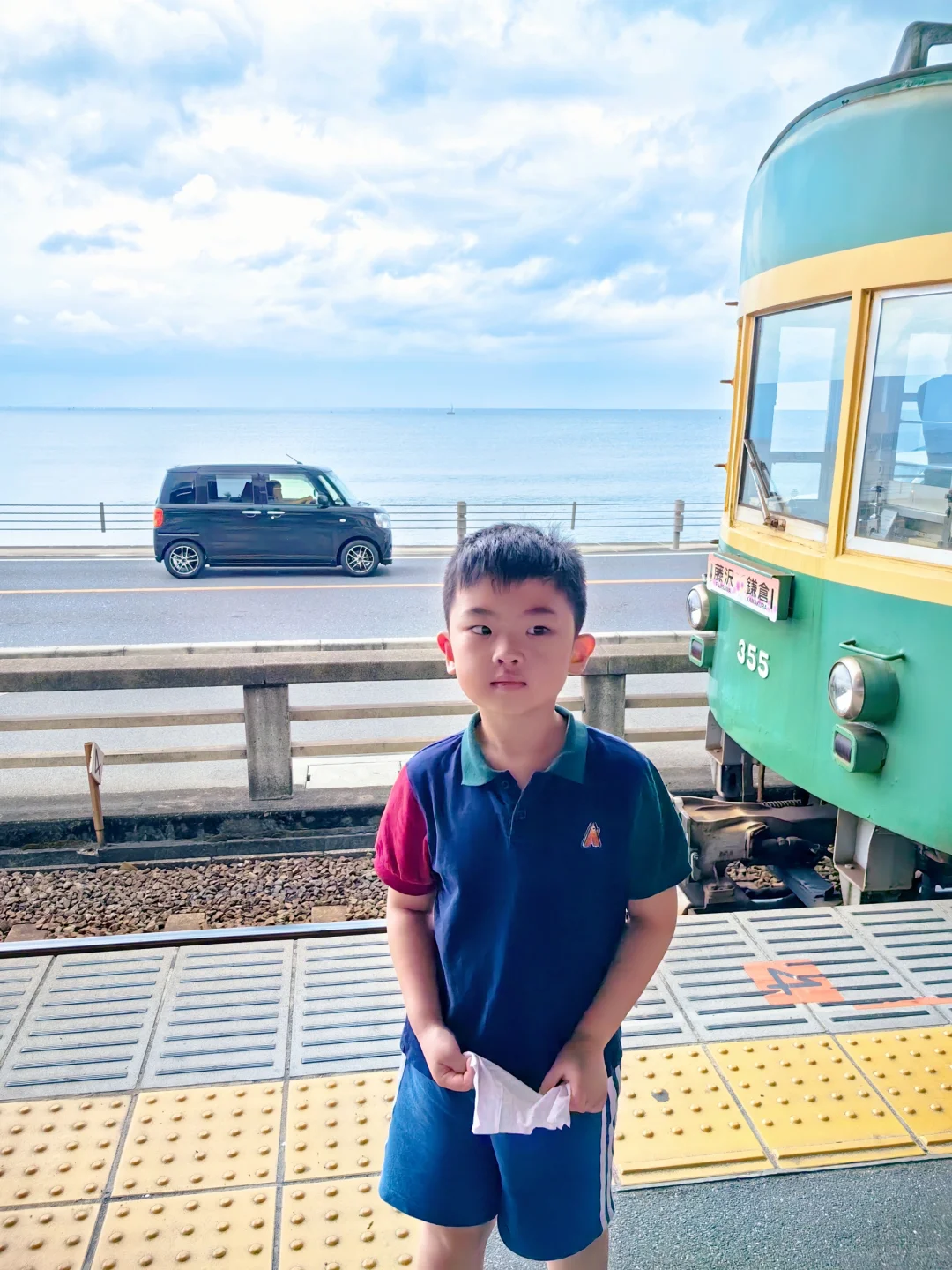 去过像镰仓的站,这次终于到达。 江之電驶过,《灌篮高手》BGM随之而来的扑面感觉。不管天气如何,前往的列车塞得满满的。 木质地板列车搭配江户时期建筑,穿过狭窄街道,在海边驶过。 🚆游玩可以在“镰仓高校前站”下来。 在列车两旁拍照的人多,蹲列车驶过。车内的拍,车外的也拍。拍的是大家的青春吧。 🍀如果时间充沛,可以下海滩走走。小朋友看到海滩就挪不动了,后面撑着伞也继续挖了会。 蹲个夕阳☀海边列车,氛围感拉满。 🩵🩵🩵