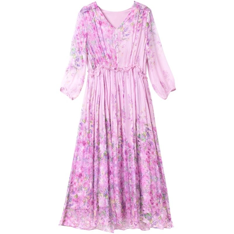 真丝顺滑,轻盈如羽,夏日内敛奢华之选,绽放女性温婉光彩。连衣裙真丝连衣裙桑蚕丝连衣裙