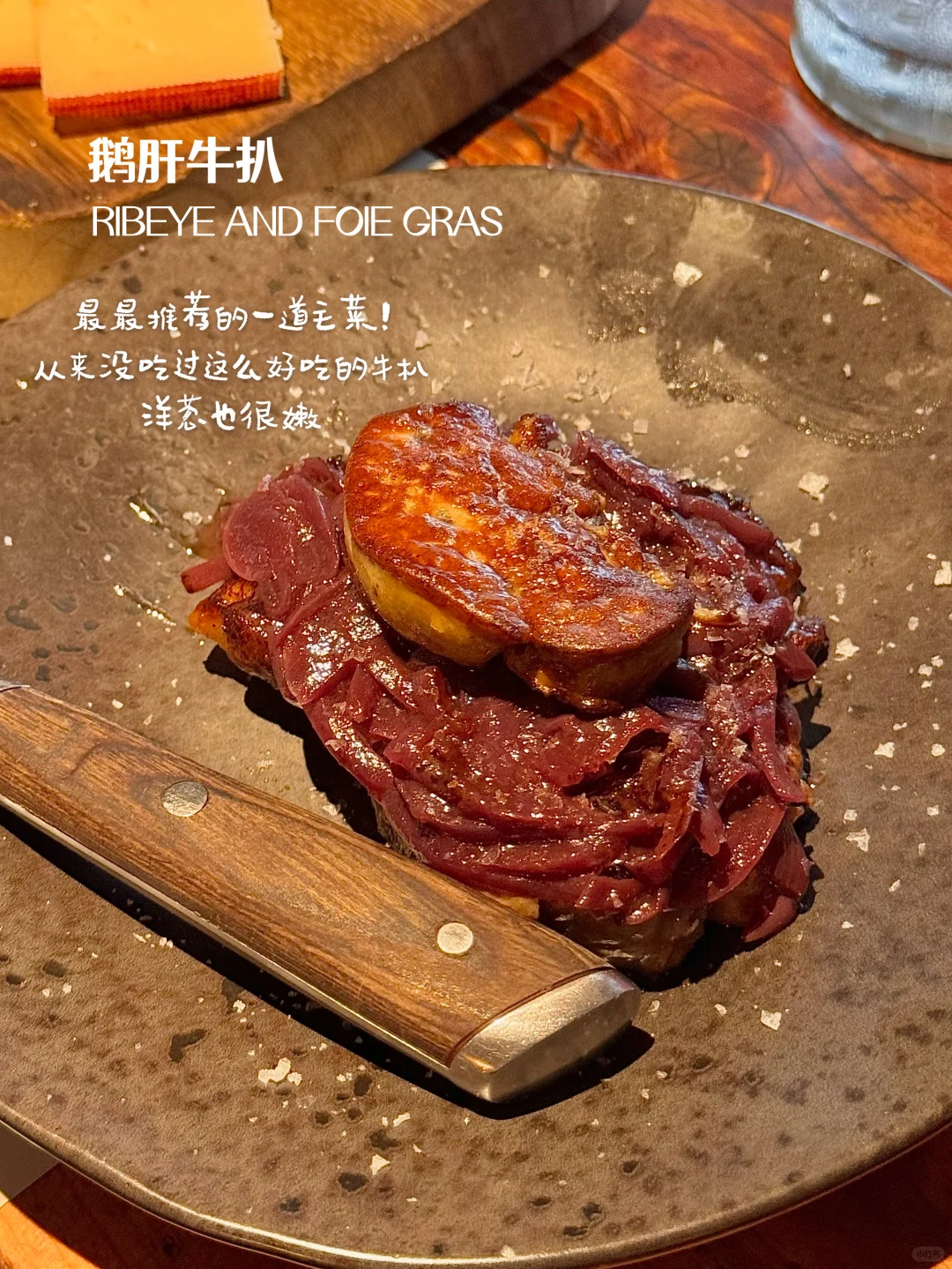 认准菜单上这道主菜!!!鹅肝配牛扒太好吃了,从来没吃过这么好吃的牛扒🥹洋葱也特别嫩,应该是白葡萄酒煮过的!