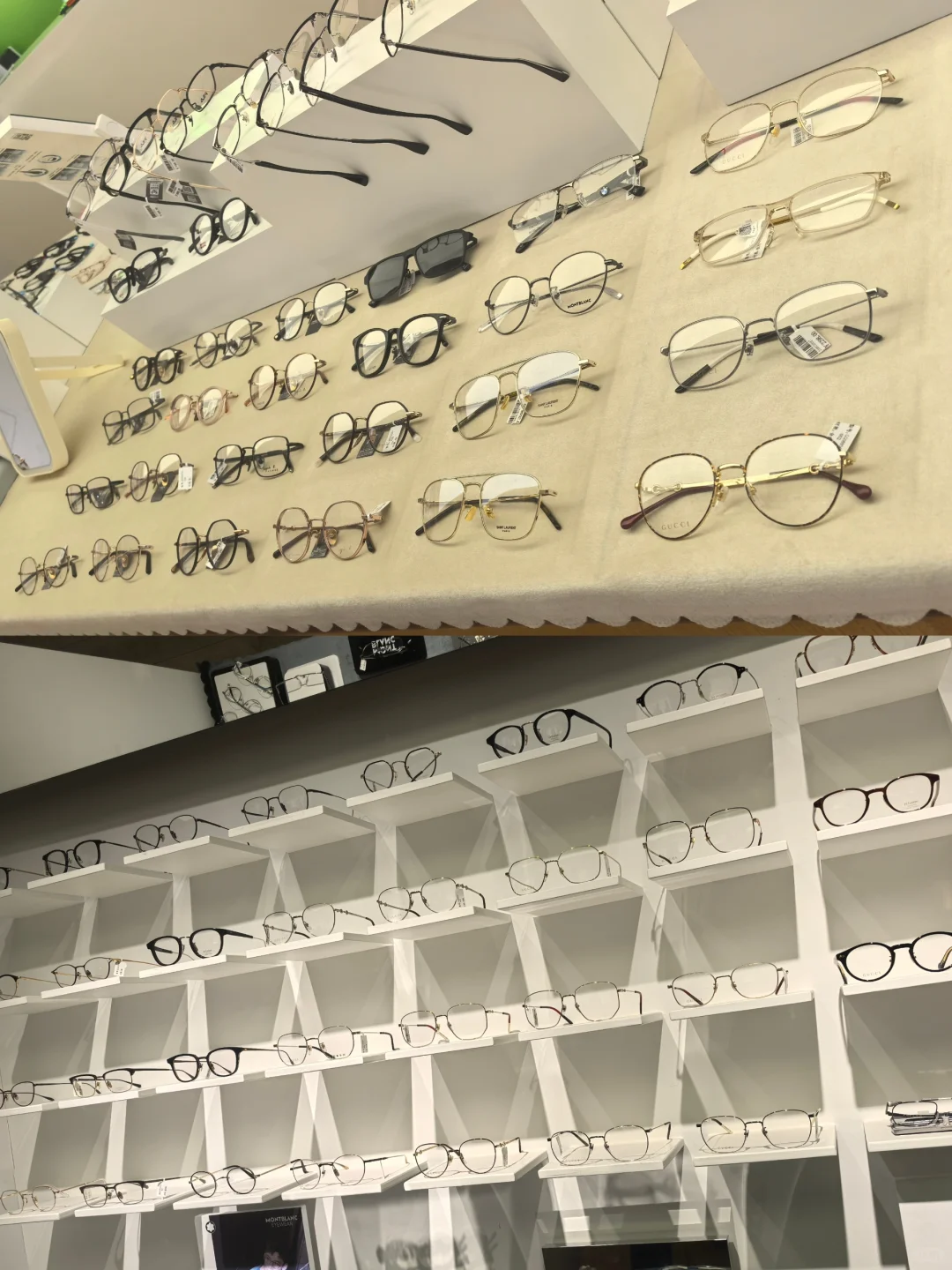 🌟店员热情地介绍了各类眼镜产品,包括纯钛、B钛和合金等材质的镜框,还有专业的验光设备和验光员,提供售前售后一体化服务。