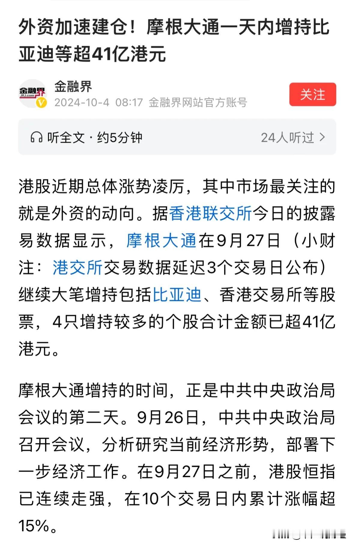 中国就是跟美国不一样,外资加速建仓需警惕外资专家唱空中国股市和经济:中国的大牛市只需要散户的信心!六天前很多外资专家还在唱空中国经济和股市,却背地里每天都在抢筹中国资产,假期都不放过!节前中国有多少人是被这样的伪专家耽误,被这样无知的媒体蒙蔽,错过了国庆节前A股的大涨,错过了这一轮A股的大牛市?我们就是跟美国不一样,我们跟着国家走,我们听我们央行的,我们听中央政治局会议的,所以我们抓住了赚钱的机会,我们散户终将走向大牛市!不要看他们说什么,看他们怎么做。 信心比黄金重要,中国人从来不差钱,只是缺乏一个赚钱的机会!外资现在都在抢筹港股和A股,比如摩根大通9月27日一个交易日叫抢筹41亿港元! 2024年10月4日书声说财经再次呼吁:中国股民和中国基民,尤其是那些被套了的股民和基民,节后不要再贱卖持仓,别给外资抄了底!大牛市来了,都会回来的,港股半导体板块今天一天大涨50%,不要怕。节前我就呼吁了中国股民和基民一股不卖!支持的人点赞关注转发,评论区留言说说你的看法。