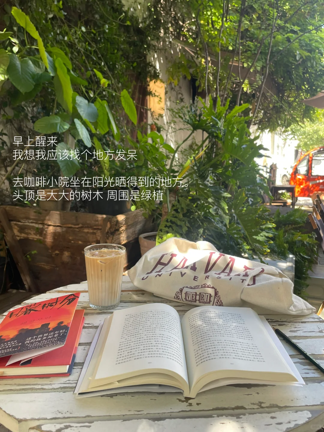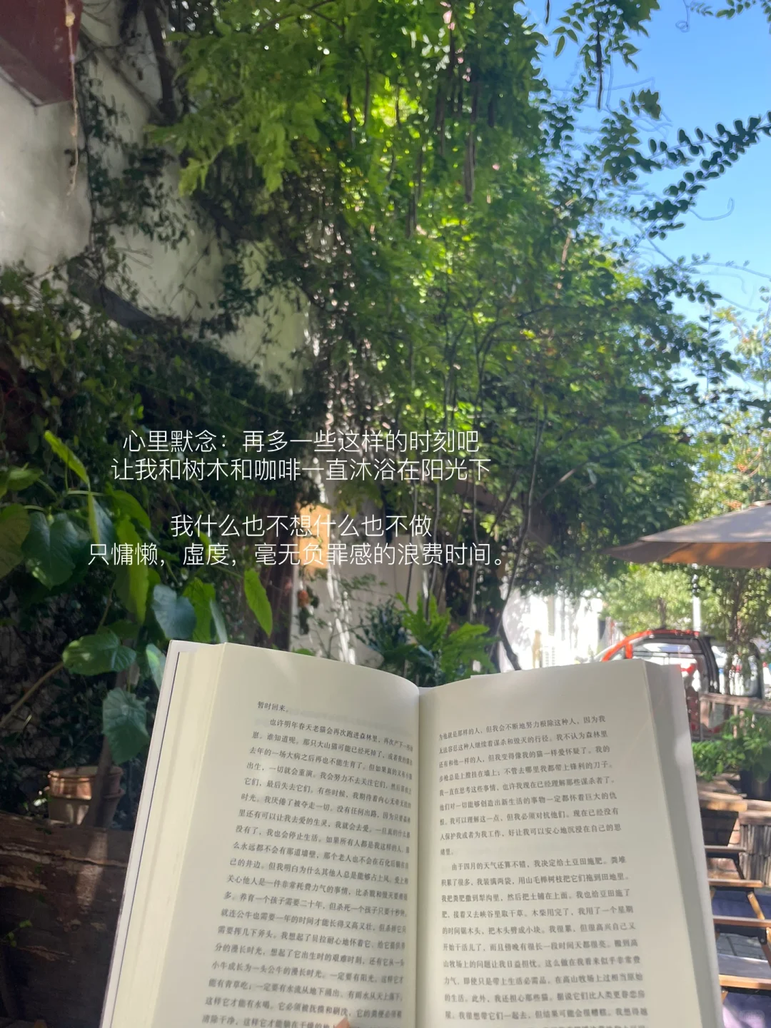 植物的味道往鼻孔里钻,光斑在书页跳舞,被微风吹起的风铃声,还有那恰到好处的温度。