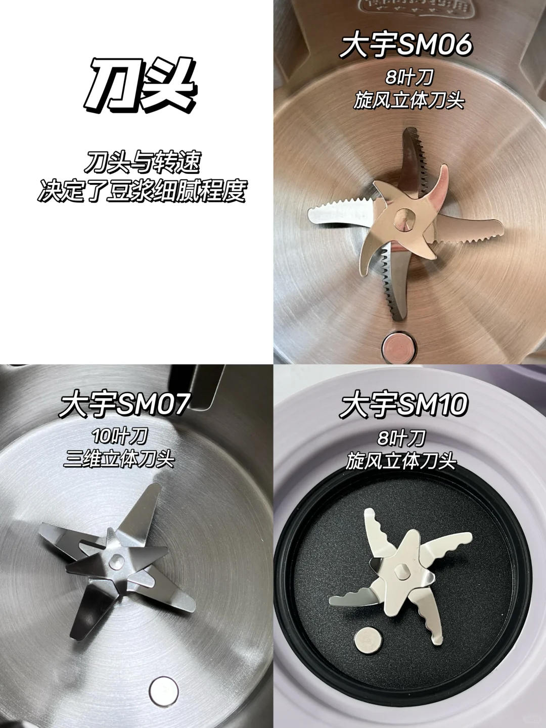 刀头:8叶立体刀头,25000转速,豆浆口感香醇丝滑,没有豆腥味😋