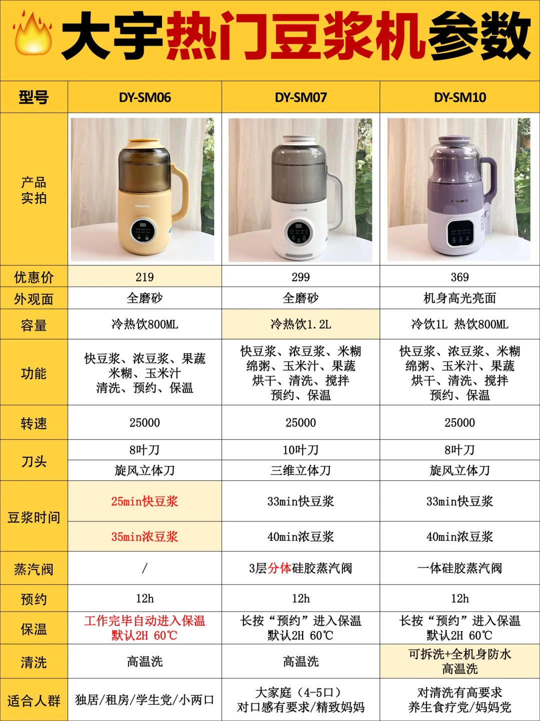 ❤总体来说,大宇的这三款豆浆机都是高颜值、高性价比,宝子们可根据自己的需求,放心入手哦!