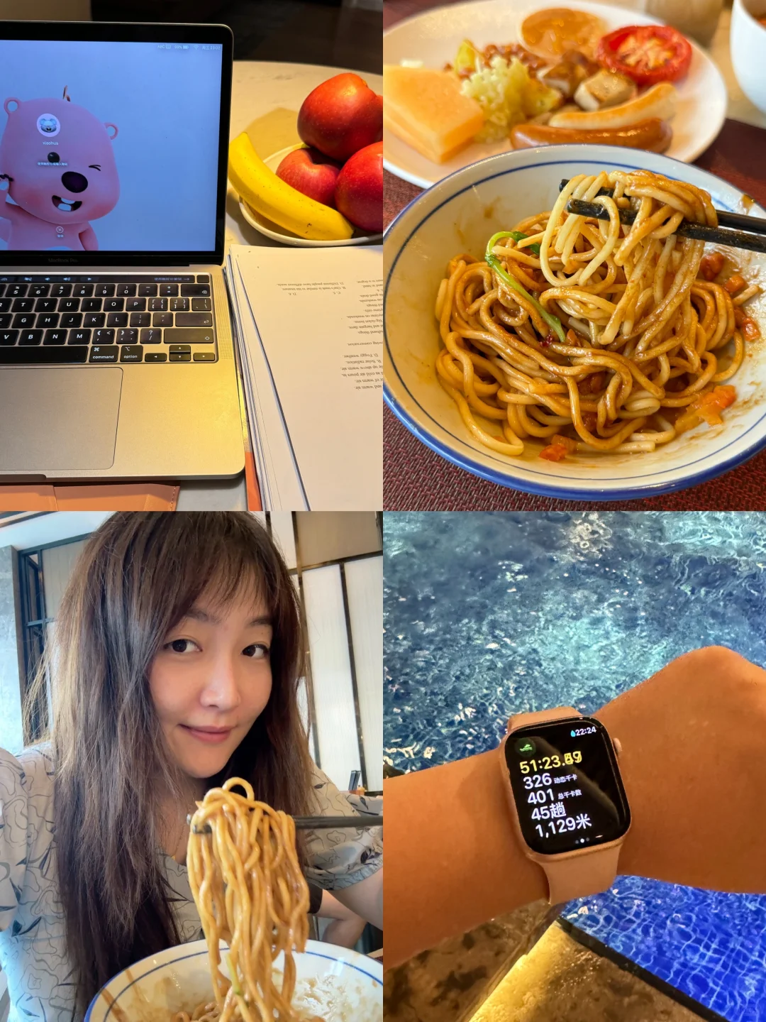 时光飞逝 酒店待了五天的武汉之旅结束✨ 江汉路人太多[皱眉R] 黄鹤楼被排的长队劝退 一个景点都没进去 选择回酒店!还是在酒店舒服 就是手机不太舒服!坏了四天 今天要走了它终于被修好了!!! (我再也不想看到白苹果了😡) - 热干面好好吃!! 酒店的早餐和我点的外卖都好吃 行政酒廊调的鸡尾酒深得我心! 包场的泳池🏊♀️ 酒廊无人打扰的阅读时光🤩 喜欢🥰