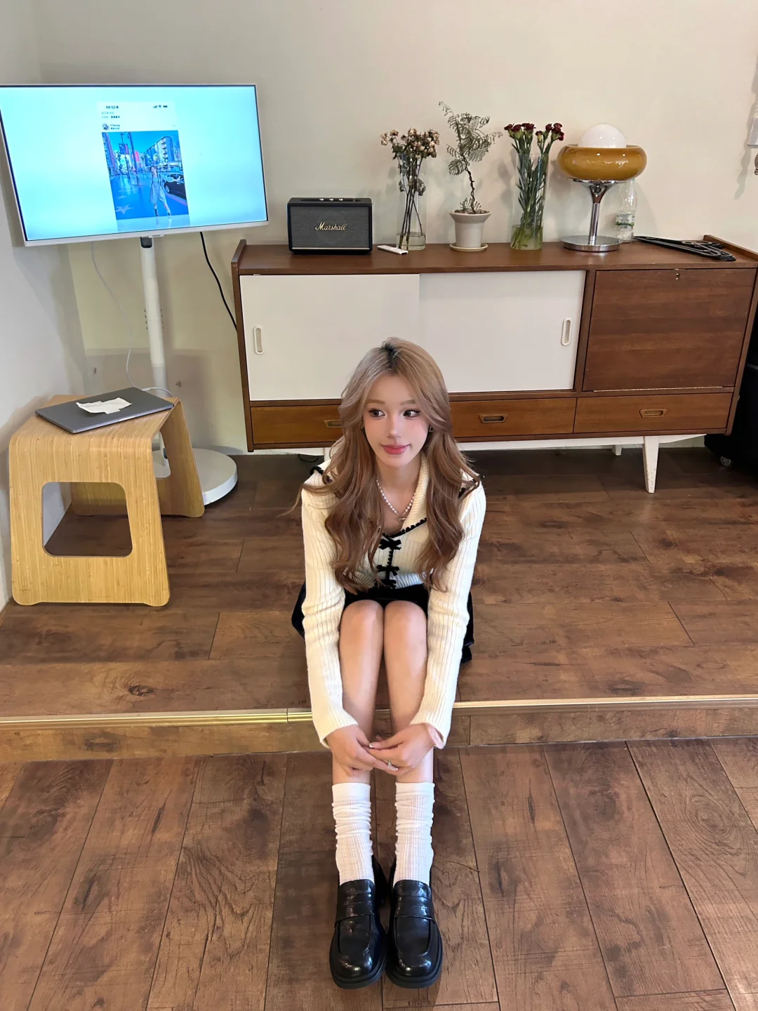 再来minmin换成新场景了哎 新沙发跟秋冬很搭🍂 今日上身这套有点小千金公主的感觉 搭配万能的小皮鞋果然很好看~ 金利来这款小皮鞋跟各种裙子都好搭🥰