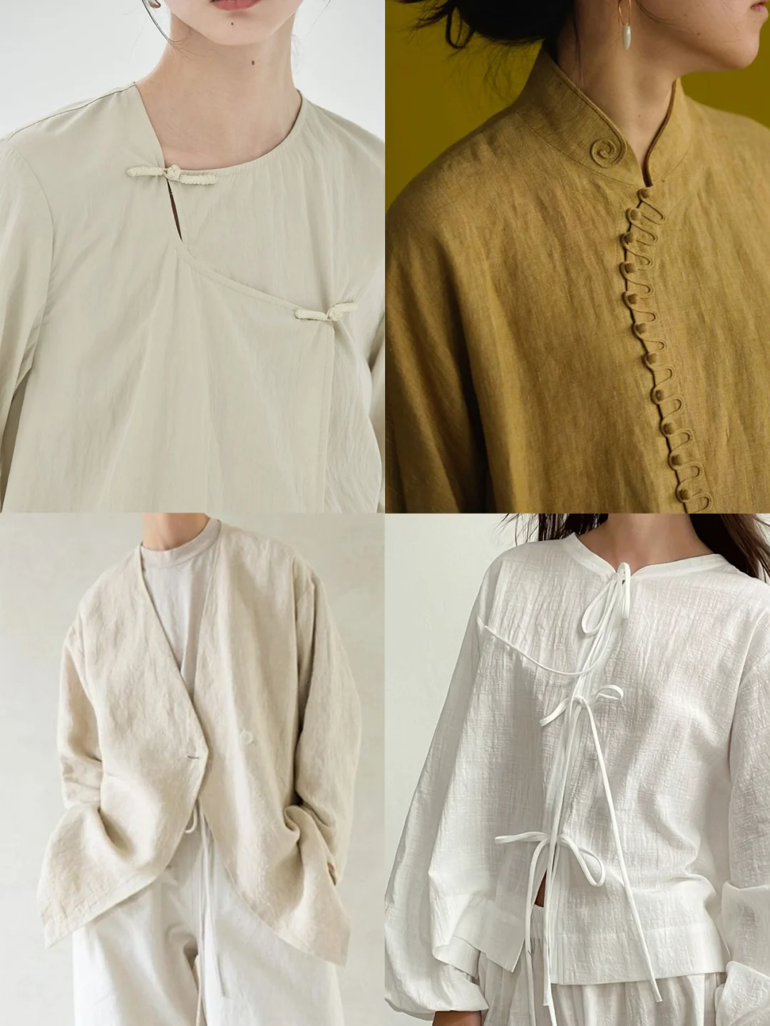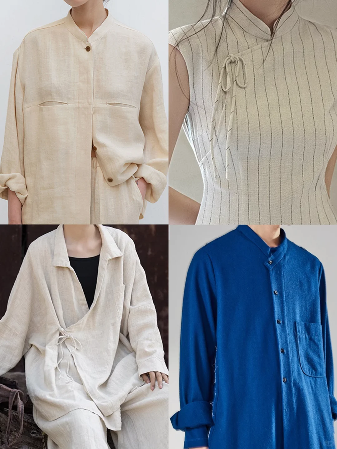 🎋“新中式穿搭”,成为年轻消费者的潮流🎋 东方美学的流行之风经久不衰, 国风的热潮 在继承传统中式风格的古朴韵 味、含蓄秀美同时。 与棉麻材质概念相符。