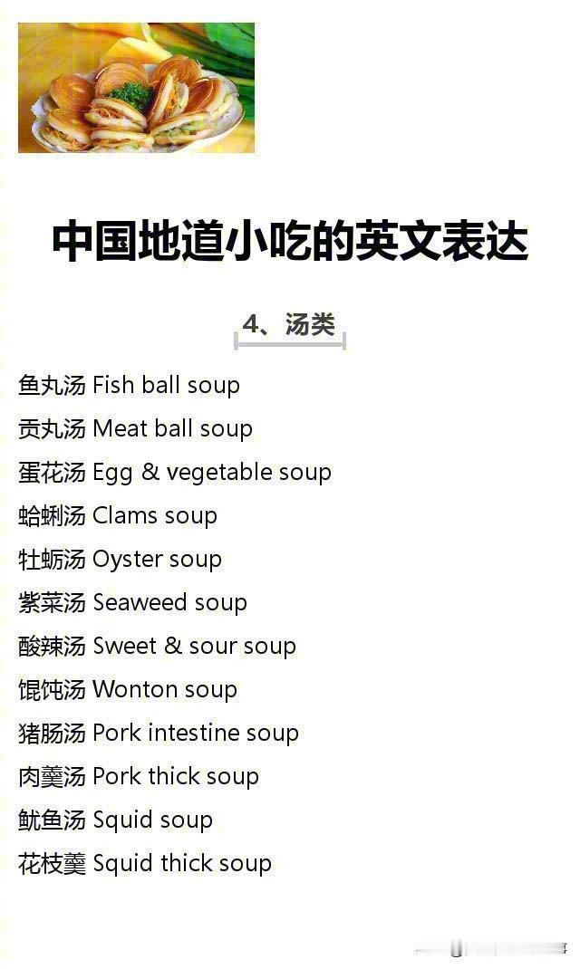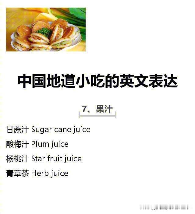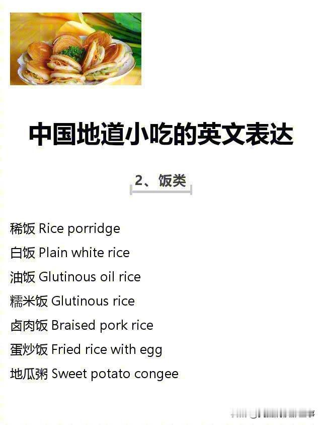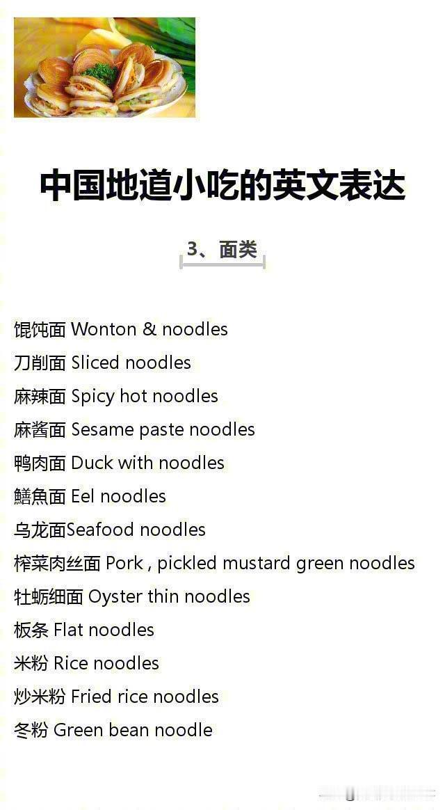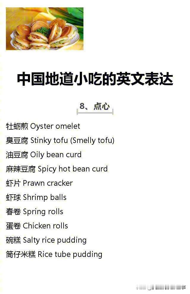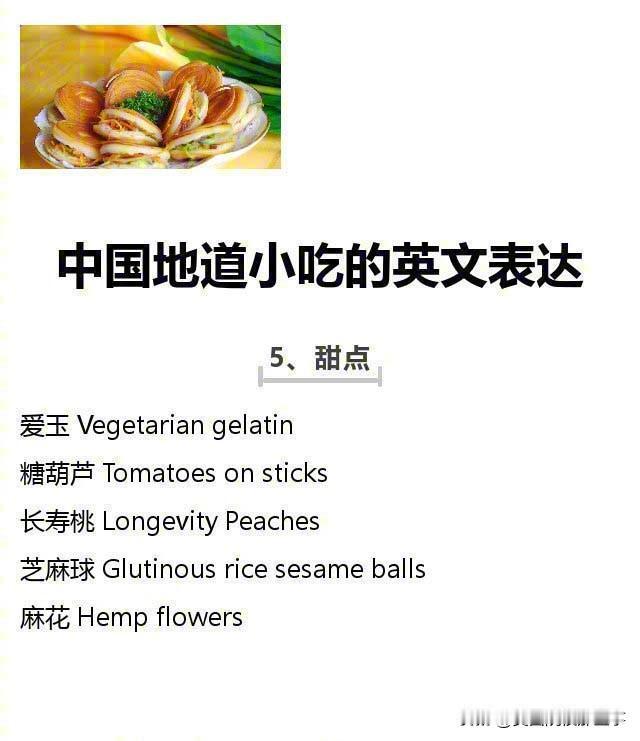 中国地道小吃的英文表达!