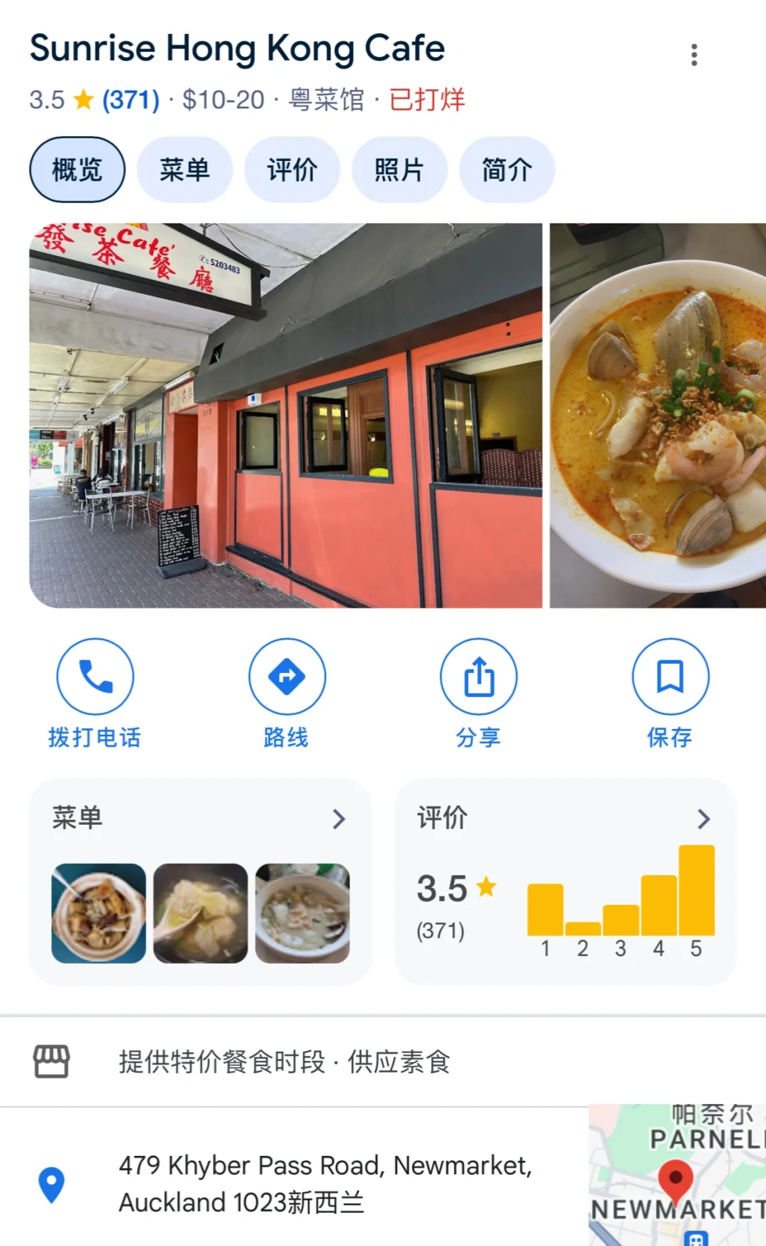 [拔草R]Sunrise Hong Kong Café 新发茶餐厅 - 479 Khyber Pass Road, Newmarket,柜台旁的展板上展示着一系列港式美食的优惠,牛肉或鸡肉面条汤、鸡肉叻沙、饺子汤、平底锅煎饺子、酱油鸡肉饭(价格从💰6.5到💰9.5,还有💰10.5的少数套餐,黑胡椒牛肉饭、黑豆鱼饭、酥脆鸡肉饭和茄子碎饭~[点赞R]