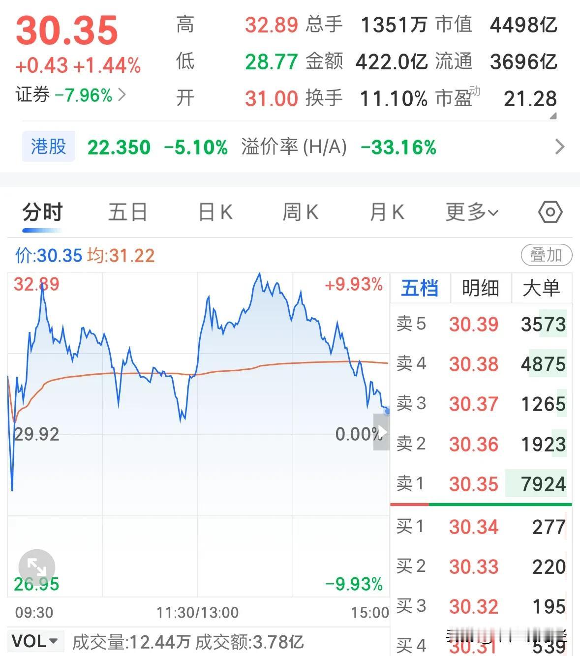 太可怕东方财富今天成交量突破900亿元,散户切勿追高券商:2024年10月9日复盘看,今天钱都被吸到券商去了,互联网券商龙头东方财富成交量突破900亿元,这应该是A股有史以来最大的日成交量,这也是我炒股15年来见过的最大日成交量。另一只传统券商龙头中信证券日成交量422亿元。高位容易出现天量天价,明天有一字跌停的风险。虽然牛市来了买券商,但如此高位天量,我还是给散户提示券商板块风险,散户切勿追高券商了,点赞关注验证高手的预判! 但这也侧面说明了A股现在还在牛市,市场根本不差钱,一只股票千亿成交量,这是原来港交所所有股票一天的成交量。